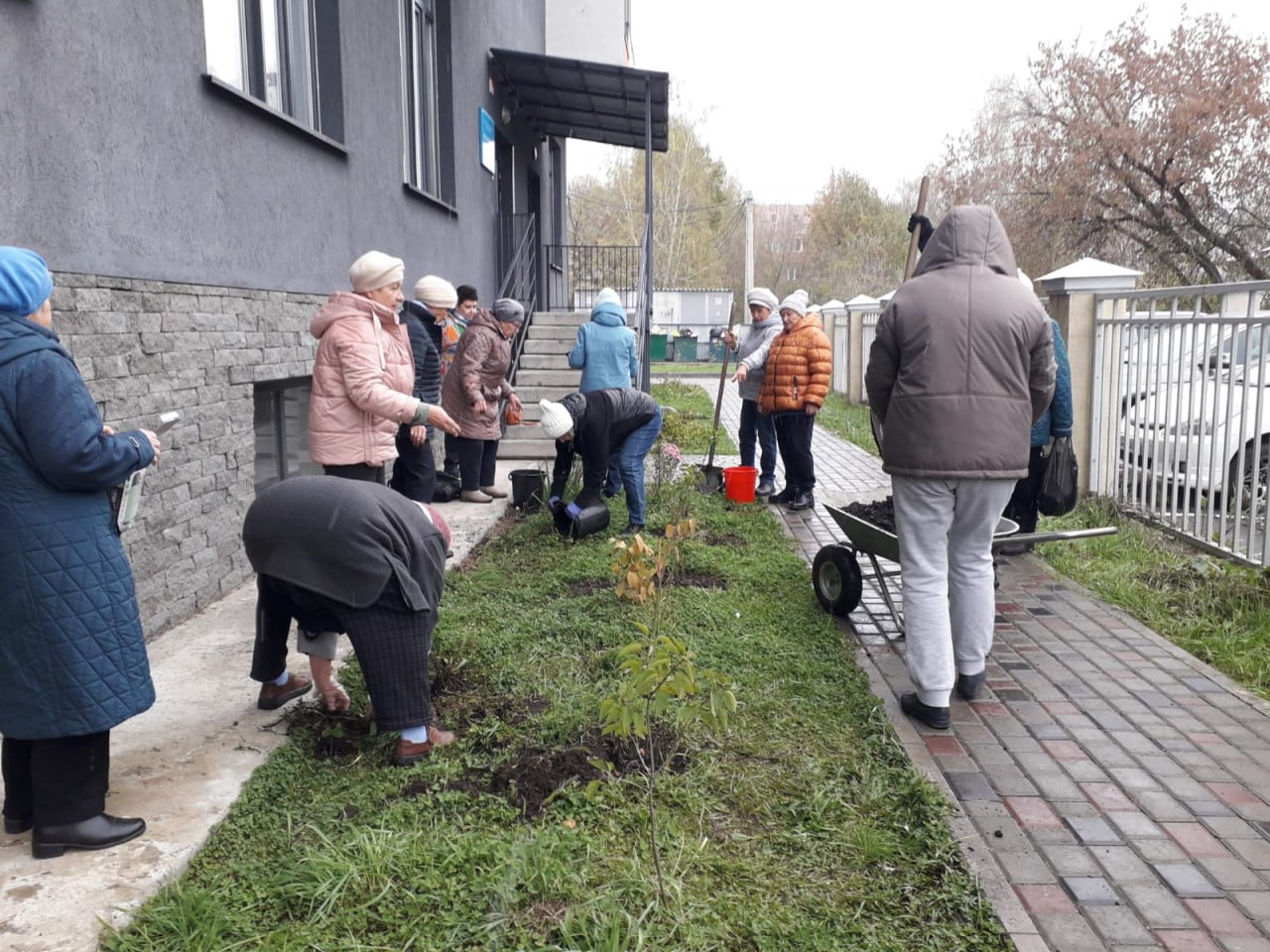 Антонина Китринская предоставила для посадки кусты белых многолетних хризантем, а Галина Жирнова – луковицы красных тюльпанов, которые весной расцветут и украсят территорию клуба.