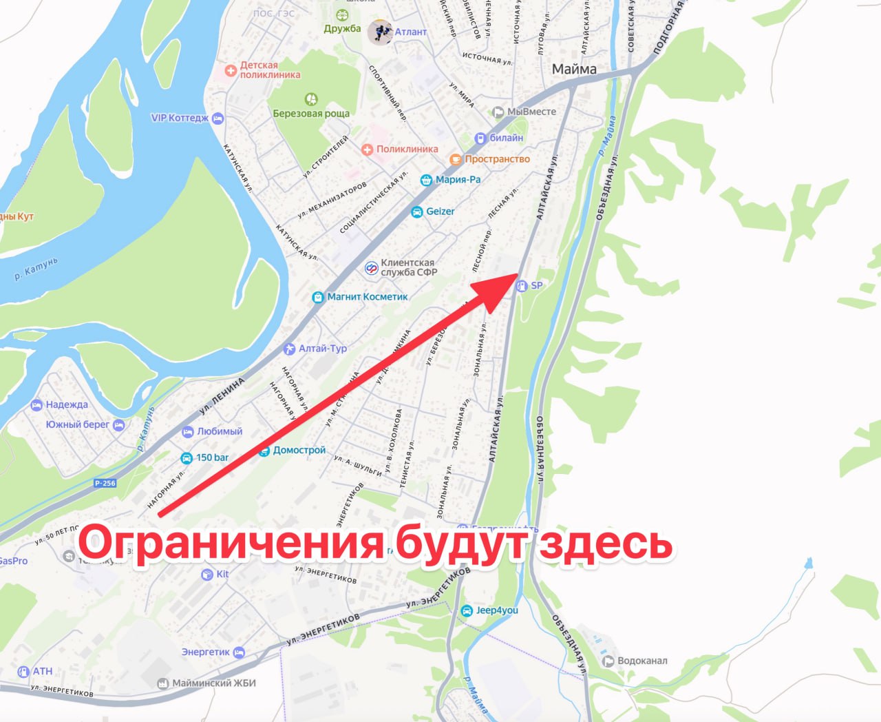 водится временное ограничение движения всех видов транспортных средств на дороге «Подъезд к г. Горно-Алтайску № 2» на стометровом участке по ул. Алтайской в Майме.