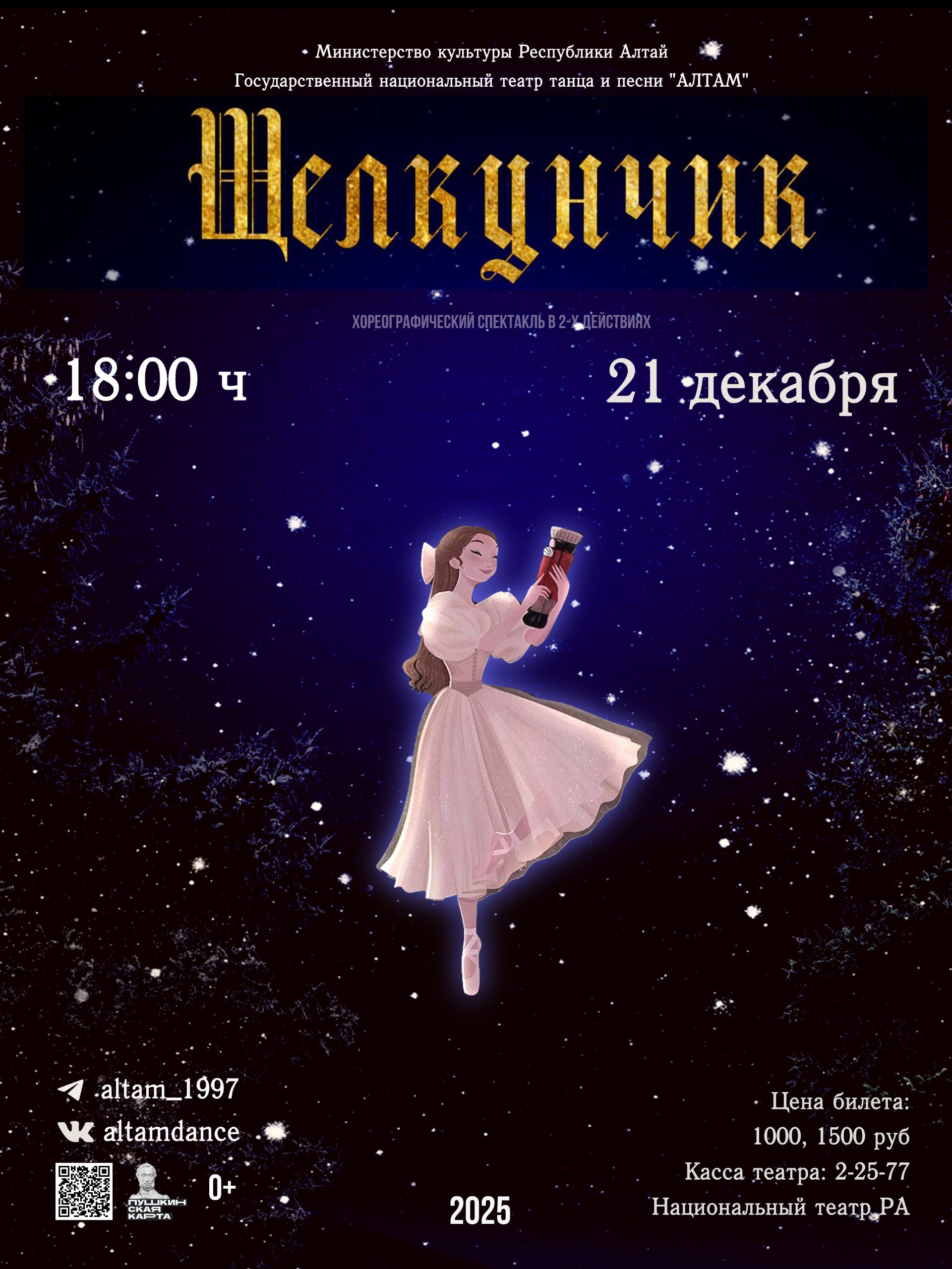 21 декабря 2025 года в национальном театре РА состоится хореографический спектакль "ЩЕЛКУНЧИК" в двух действиях на музыку Петра Ильича Чайковского.