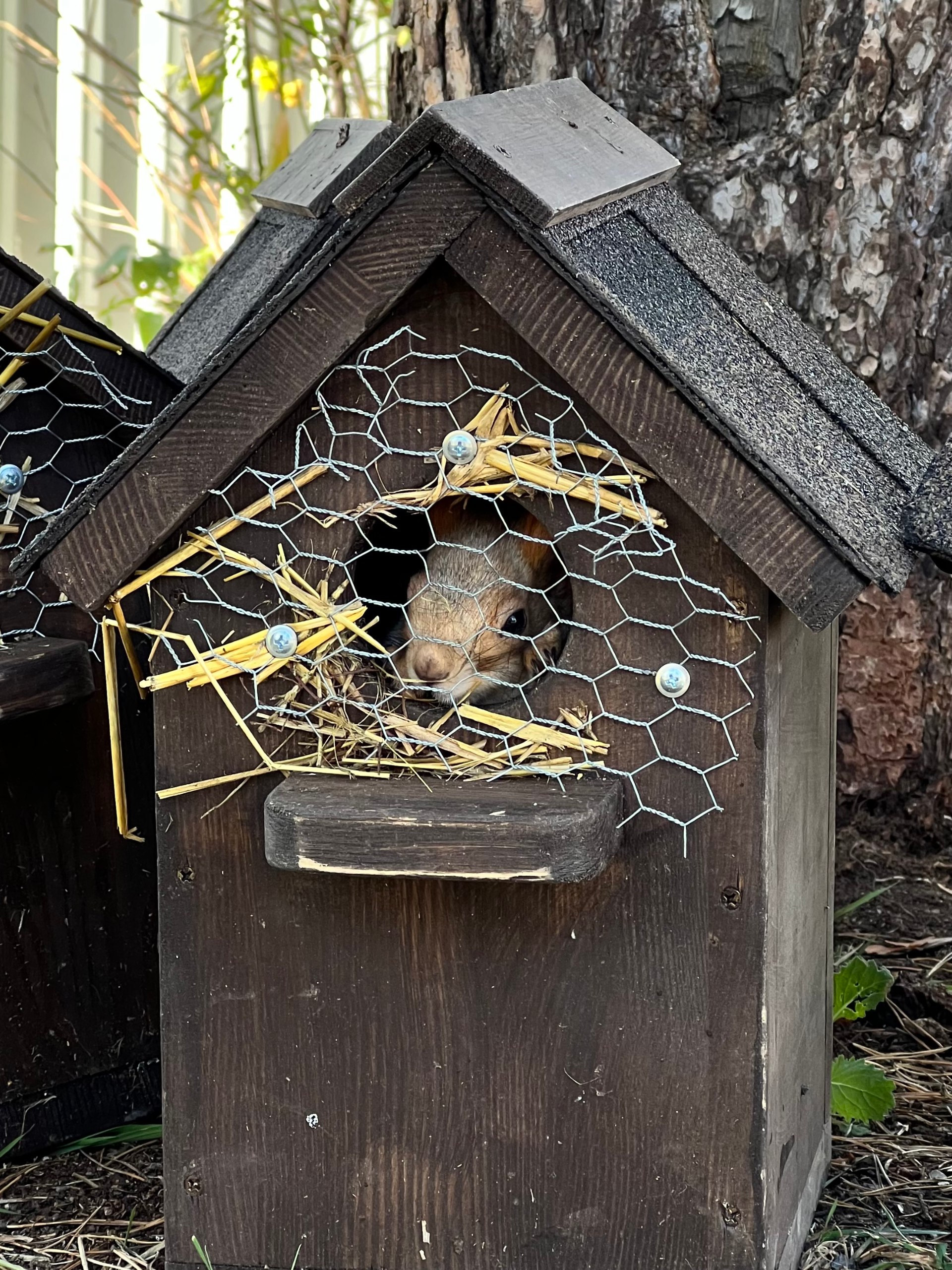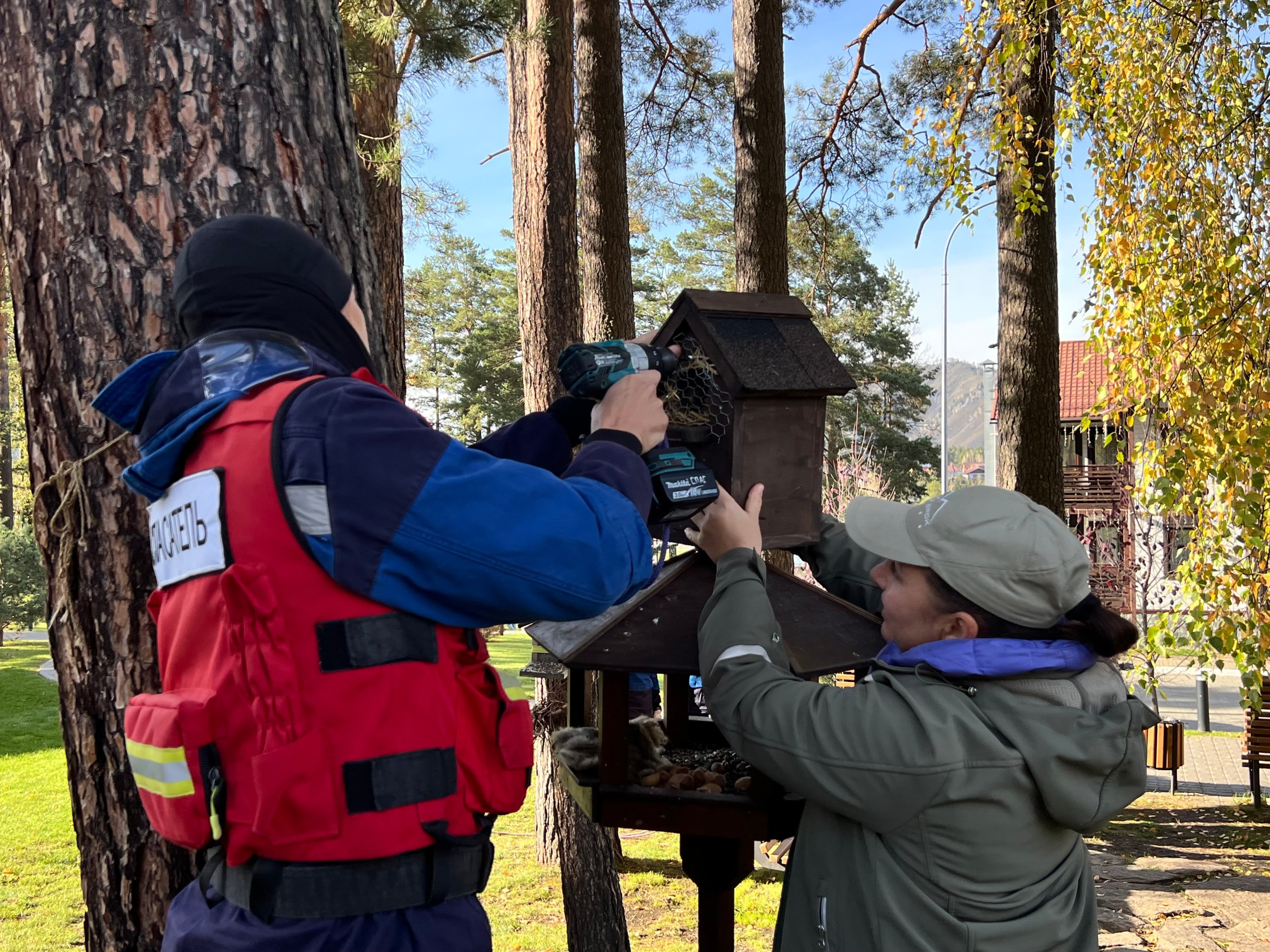 Для закрепления телеуток на территории курорта специалисты размещают на деревьях дуплянки и кормушки, которые крепятся с помощью такелажных лент без повреждения стволов. Их основная задача – безопасно и надежно закрепить домики для новых обитателей.