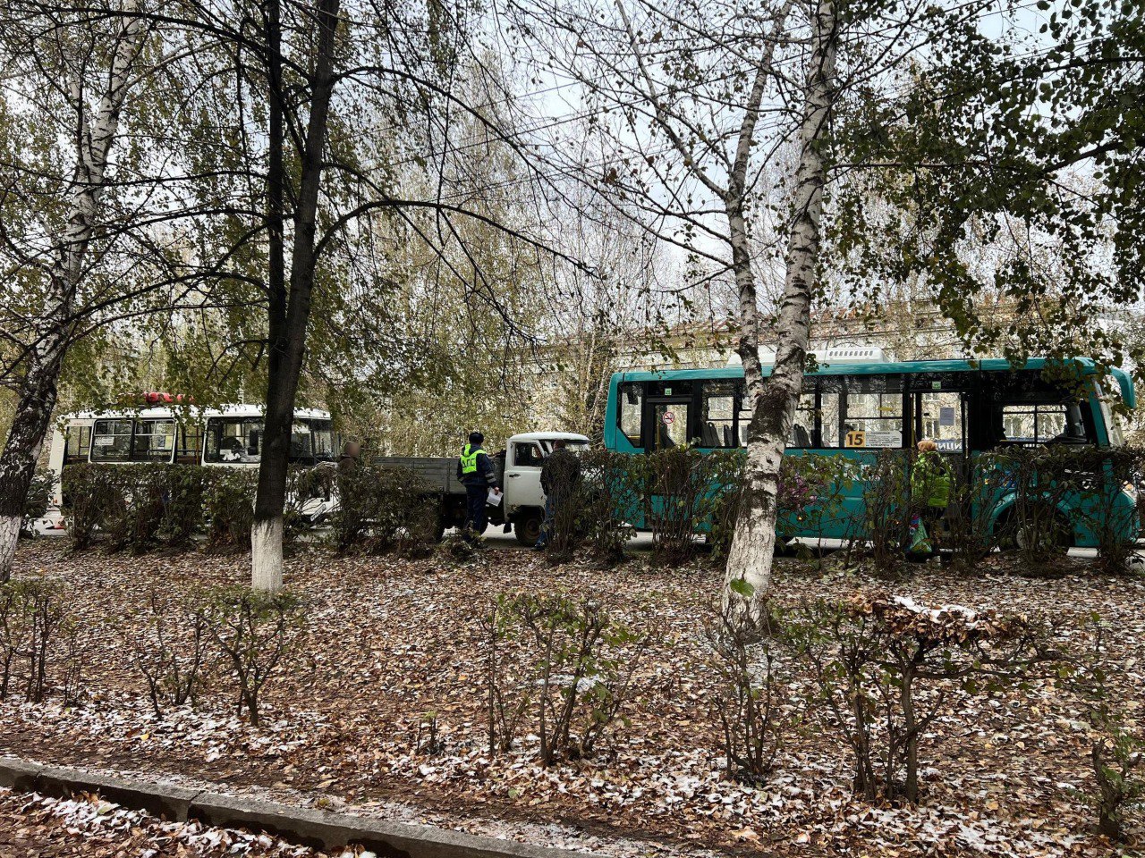 В Горно-Алтайске на Коммунистическом проспекте столкнулись два автобуса и автомобиль