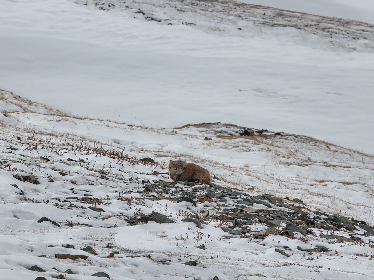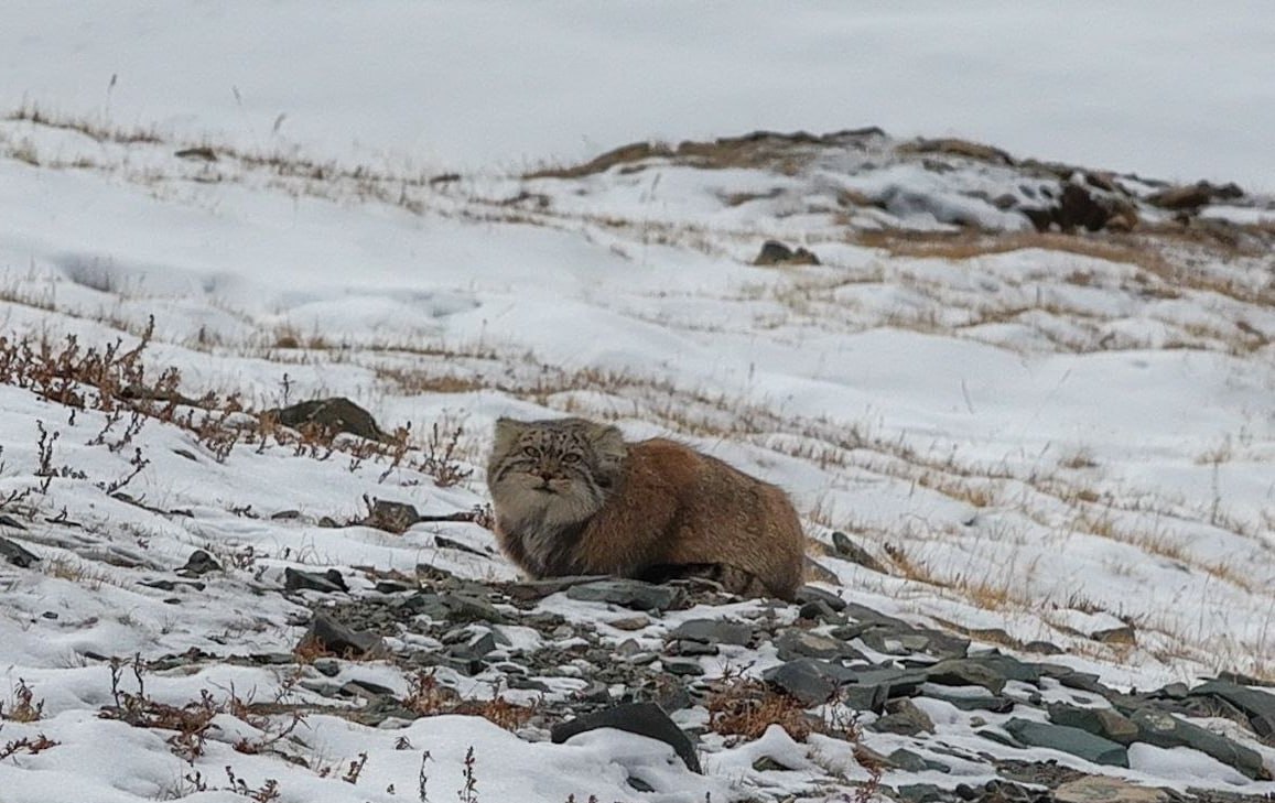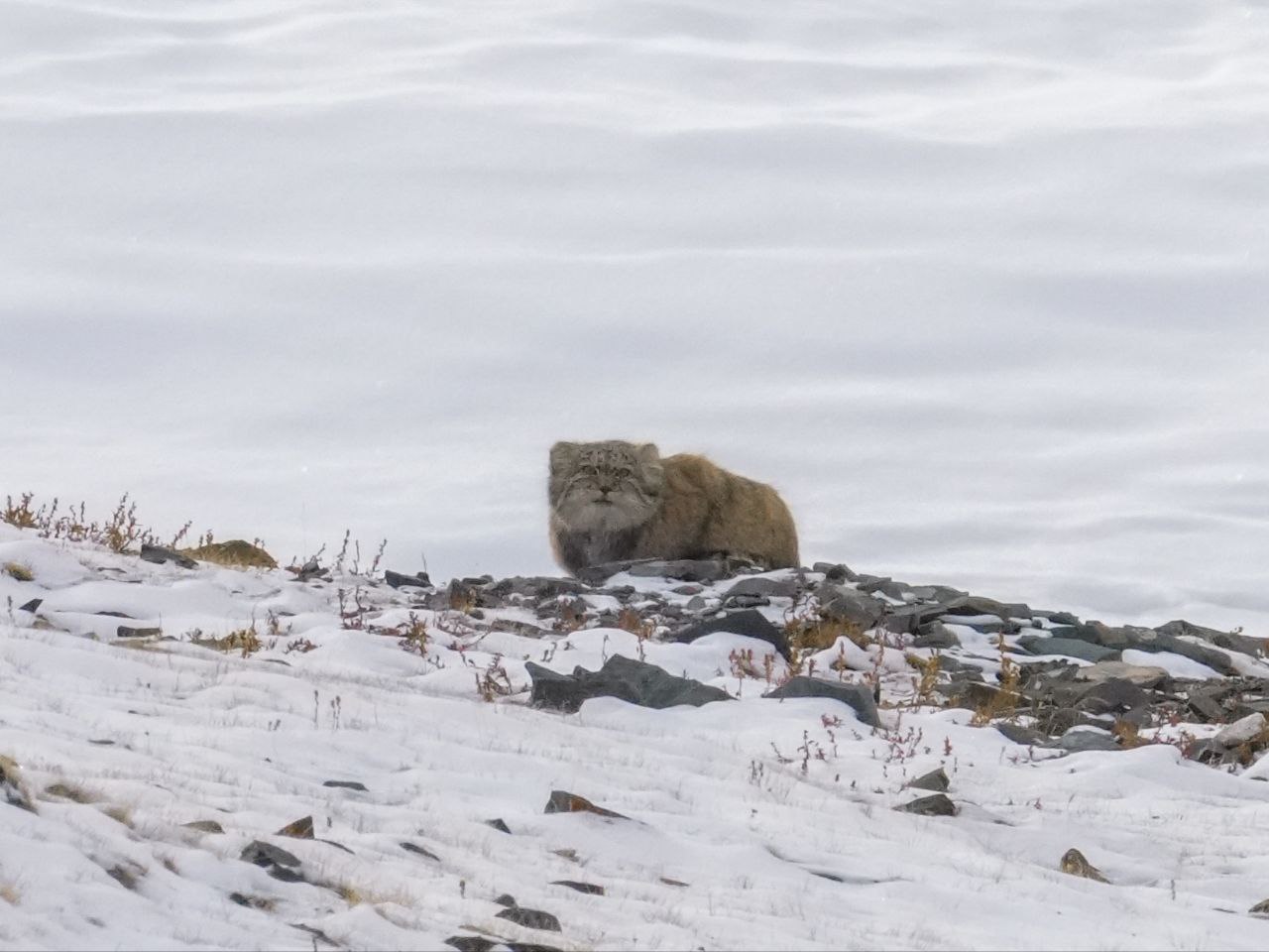 "Всматриваясь в бескрайние заснеженные и как-будто безжизненные вершины Сайлюгемского национального парка, можно почувствовать, что за тобой самим кто-то внимательно наблюдает. Наблюдает оттуда, где глазу обычно не за что зацепиться - только снег и камни … И только внимательно присмотревшись, осознаешь, что поймал на себе презрительно-надменный взгляд пушистого (у манулов самый густой и плотный мех среди всех кошачих на планете) «камня». "