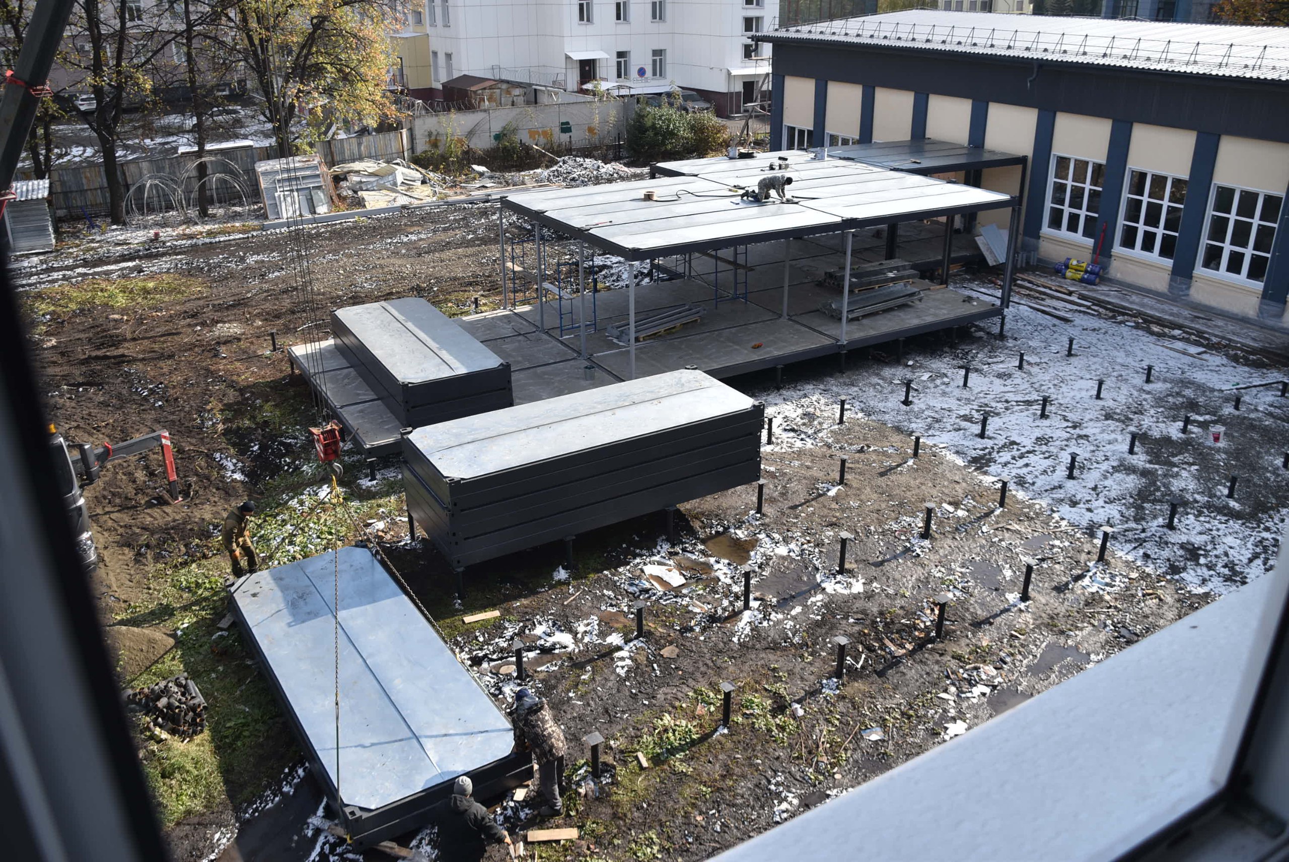 А на прилегающей территории начался монтаж модульного здания для столовой. Это дополнительные площади для нужд лицея, которые возводятся по поручению Главы региона Андрея Турчака при поддержке ГК «Эталон».