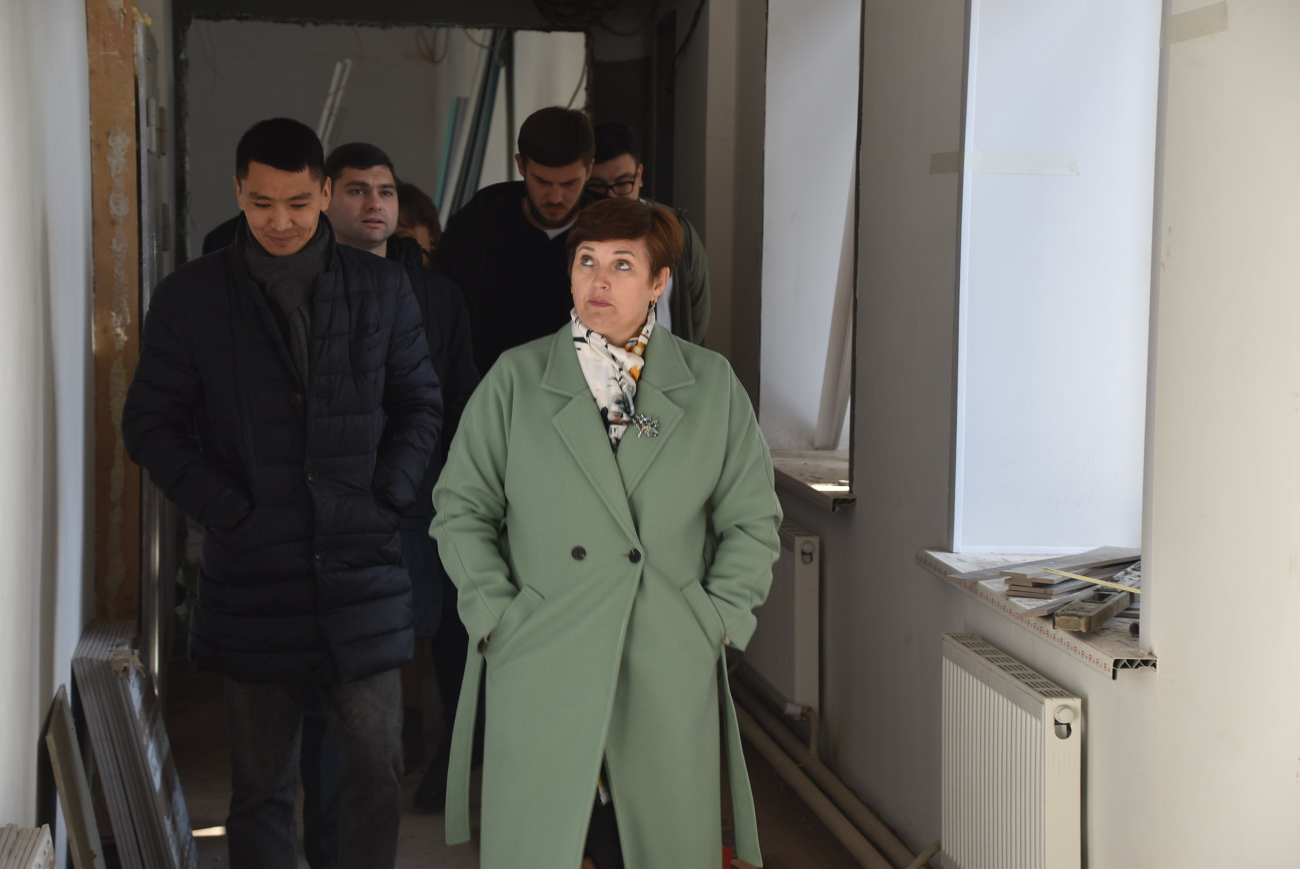 Внутри здания кипит работа: идут отделочные работы, укладывается линолеум, запущено отопление, оборудуются санузлы и устанавливаются двери в учебных кабинетах.