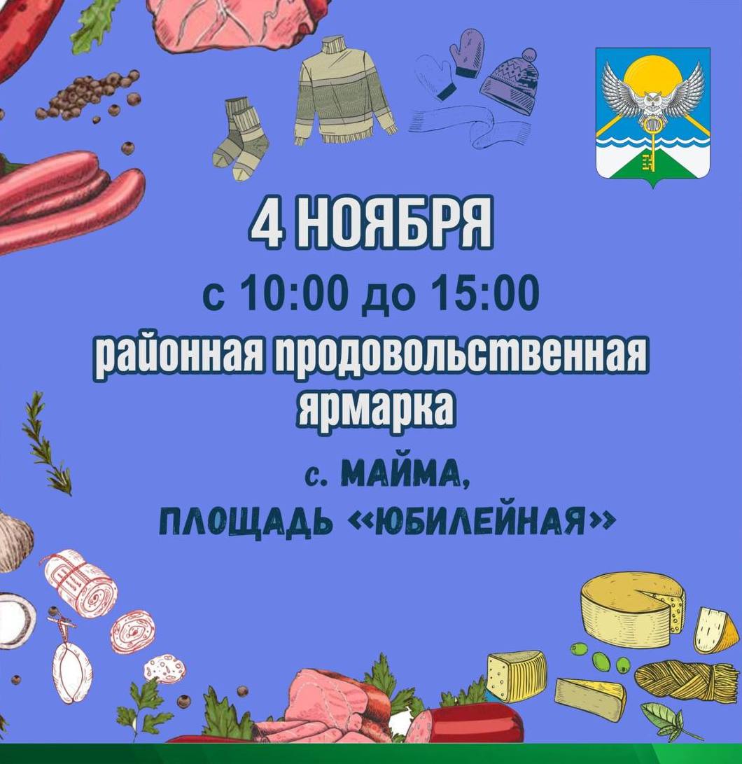 Администрация Майминского района приглашает жителей и гостей Республики Алтай посетить районную сельскохозяйственную ярмарку, которая состоится в 10:00 часов 4 ноября 2025 года в с. Майма на площади «Юбилейная»