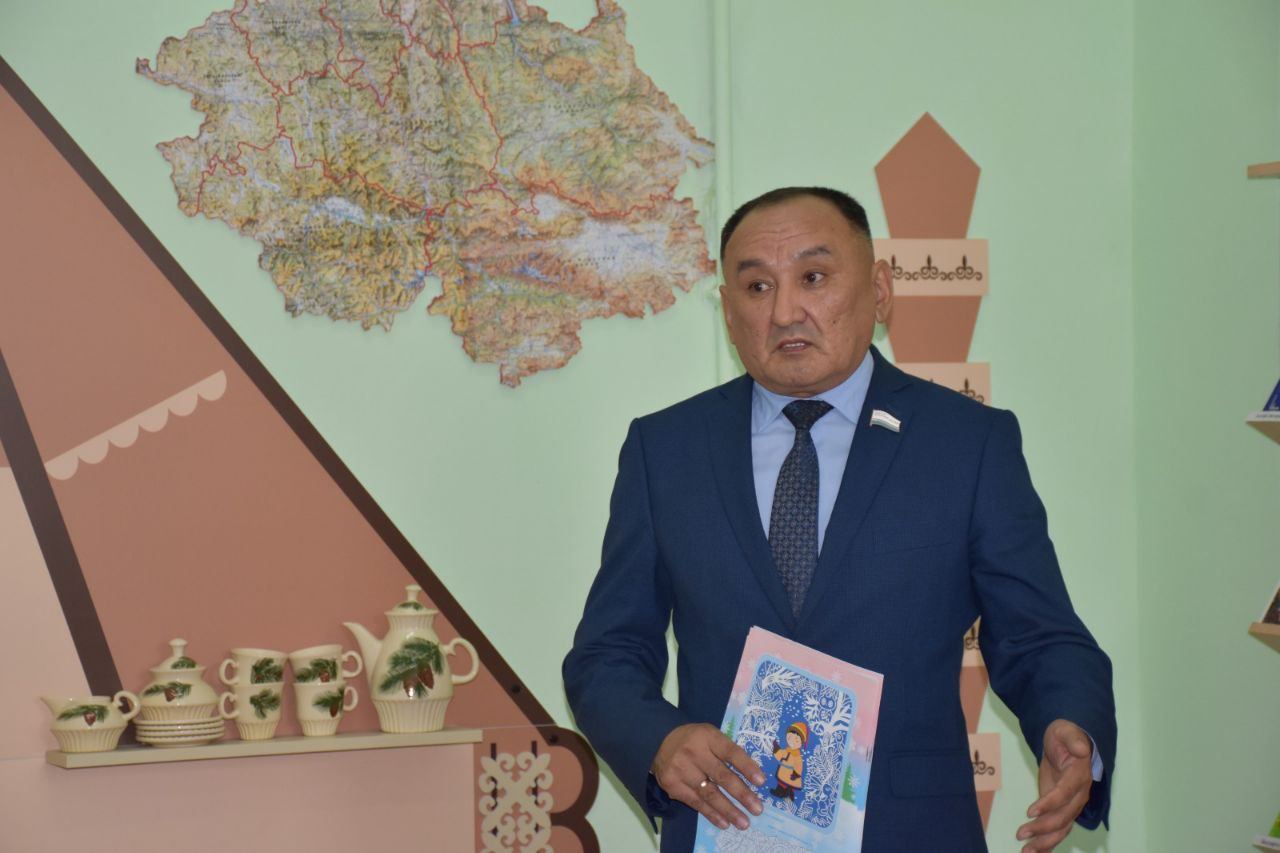 Сотрудников и маленьких читателей библиотеки поздравил депутат РА, заместитель генерального директора литературно-издательского дома «Алтын-Туу» Петр Попошев.