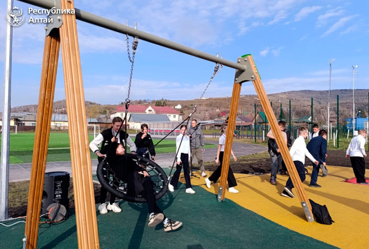 В селе Кызыл-Озек Майминского района состоялось открытие современной детской площадки.