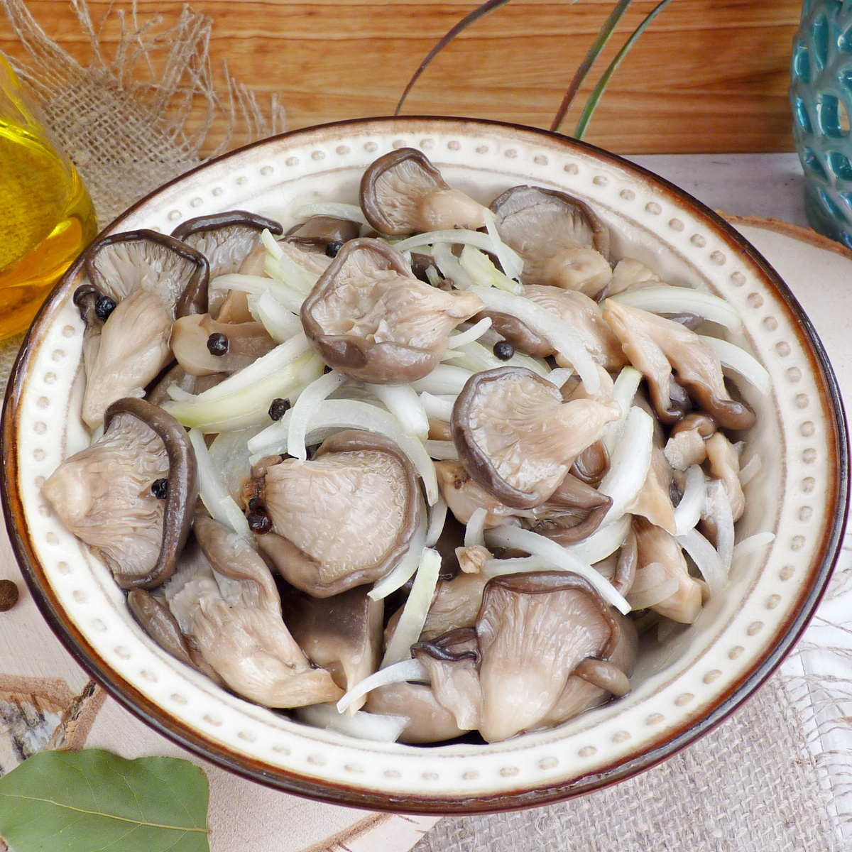 Маринование начинается с приготовления маринада. В кастрюлю наливается 600 мл воды, добавляются 2 столовые ложки морской соли, 2 столовые ложки сахара, специи и растительное масло. В завершение вливается уксус. Смесь доводится до кипения, после чего в нее аккуратно помещаются вешенки. Грибы готовятся в маринаде всего 8 минут, затем кастрюля снимается с плиты и дается возможность остыть.
