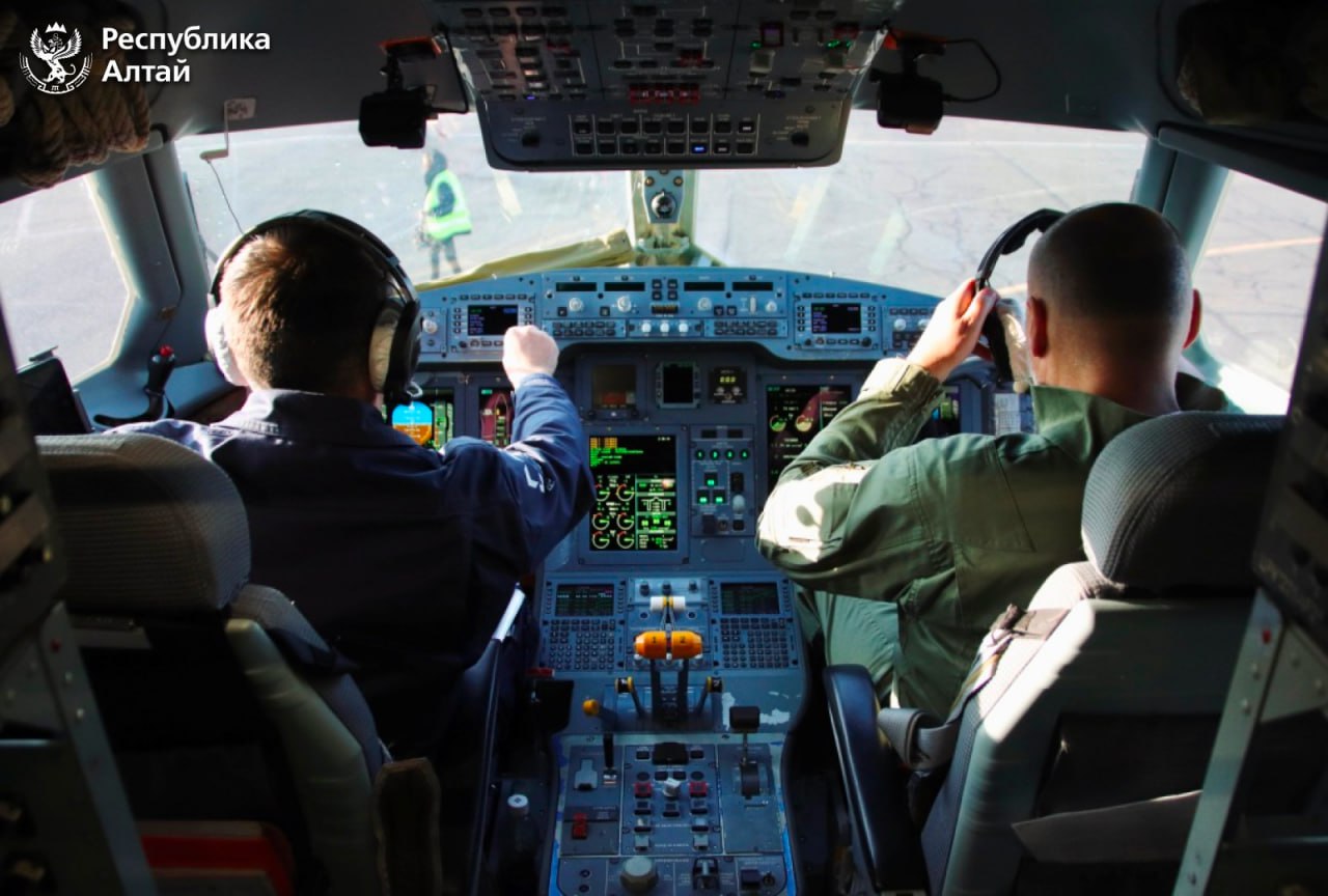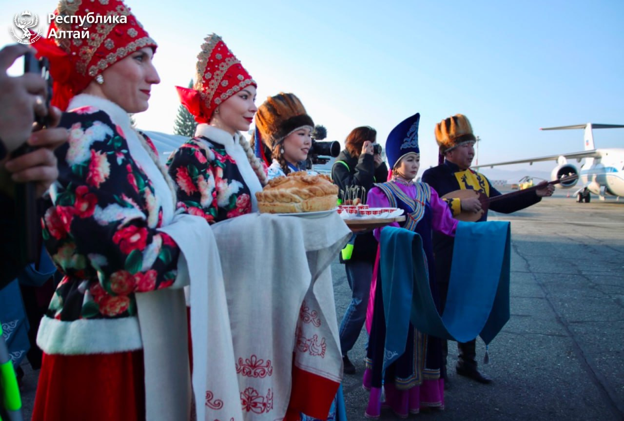 Сегодня в аэропорту борт с летчиками-испытателями встретили по русским и алтайским традициям.
