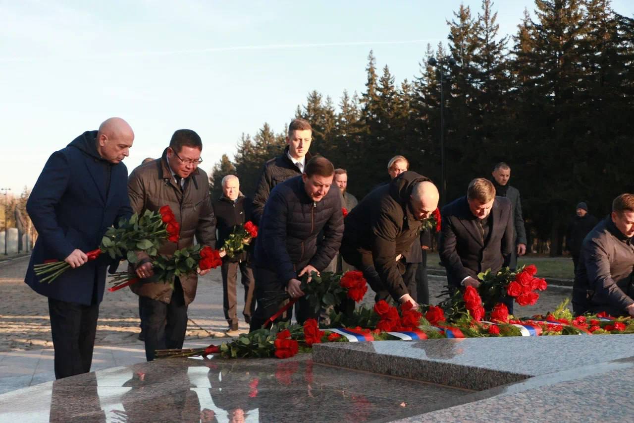 Перед началом рабочей программы в Омске возложили цветы в Мемориальном комплексе «Парк имени 30-летия Победы» и посетили экспозицию военной техники парка «Патриот».