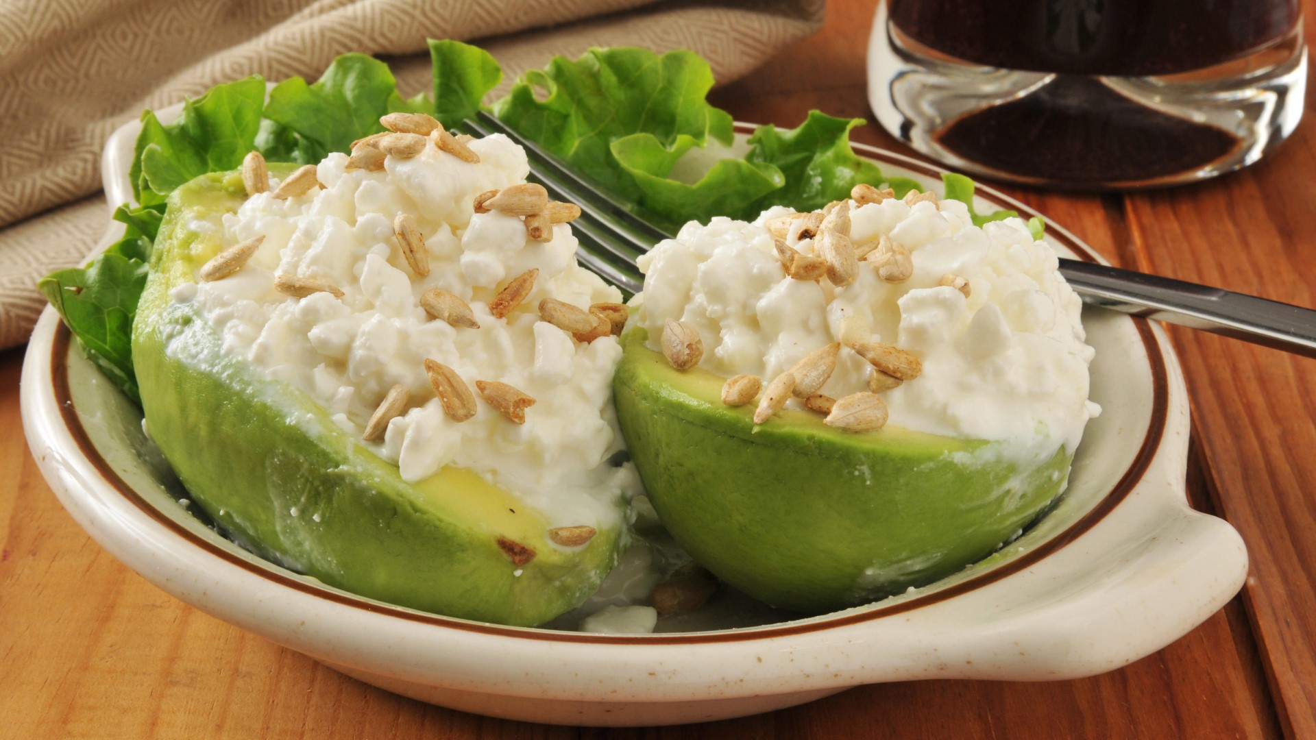 Разрежьте авокадо пополам и извлеките косточку. Выньте часть мякоти, наполните лодочки из авокадо сырной начинкой. Украсьте закуску цельными орехами, советует портал «Лайфхакер». Готово! Можно подавать деликатес к столу.