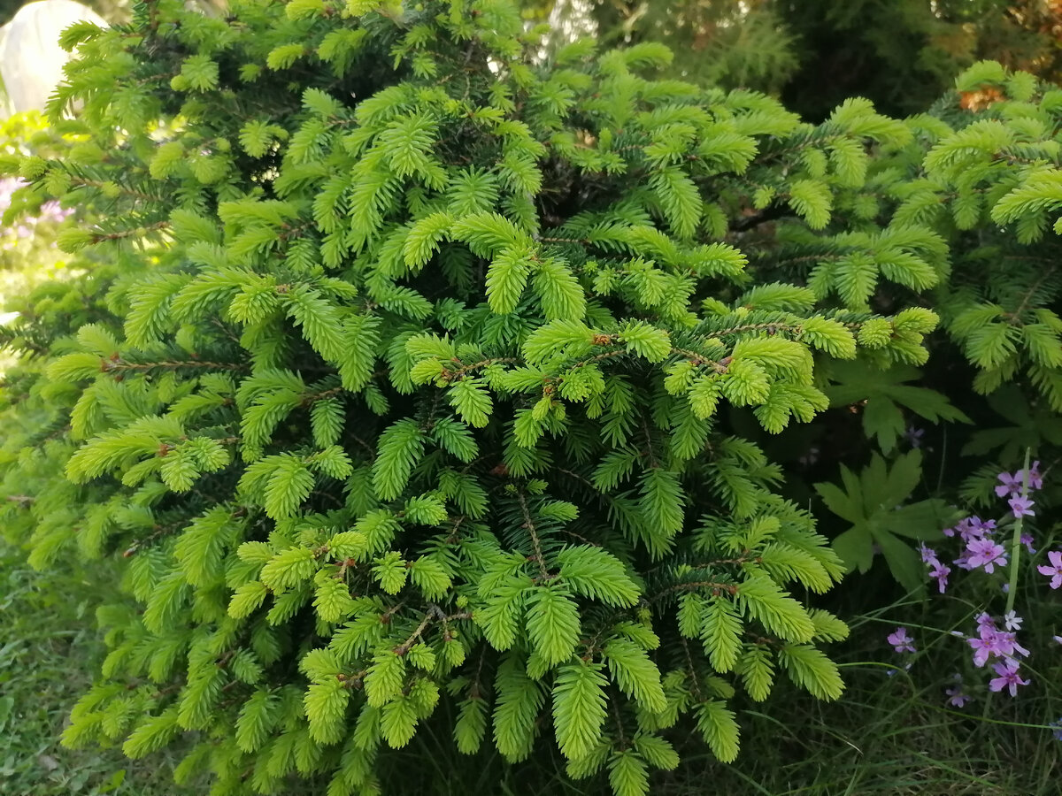 Не только форма, но и хвоя делает ель Нидиформис особенной. Ее густые, плоские и светло-зеленые иголки длиной 7–10 мм создают впечатление живого зеленого облака, особенно весной, когда на кончиках ветвей появляется нежный молодой прирост.