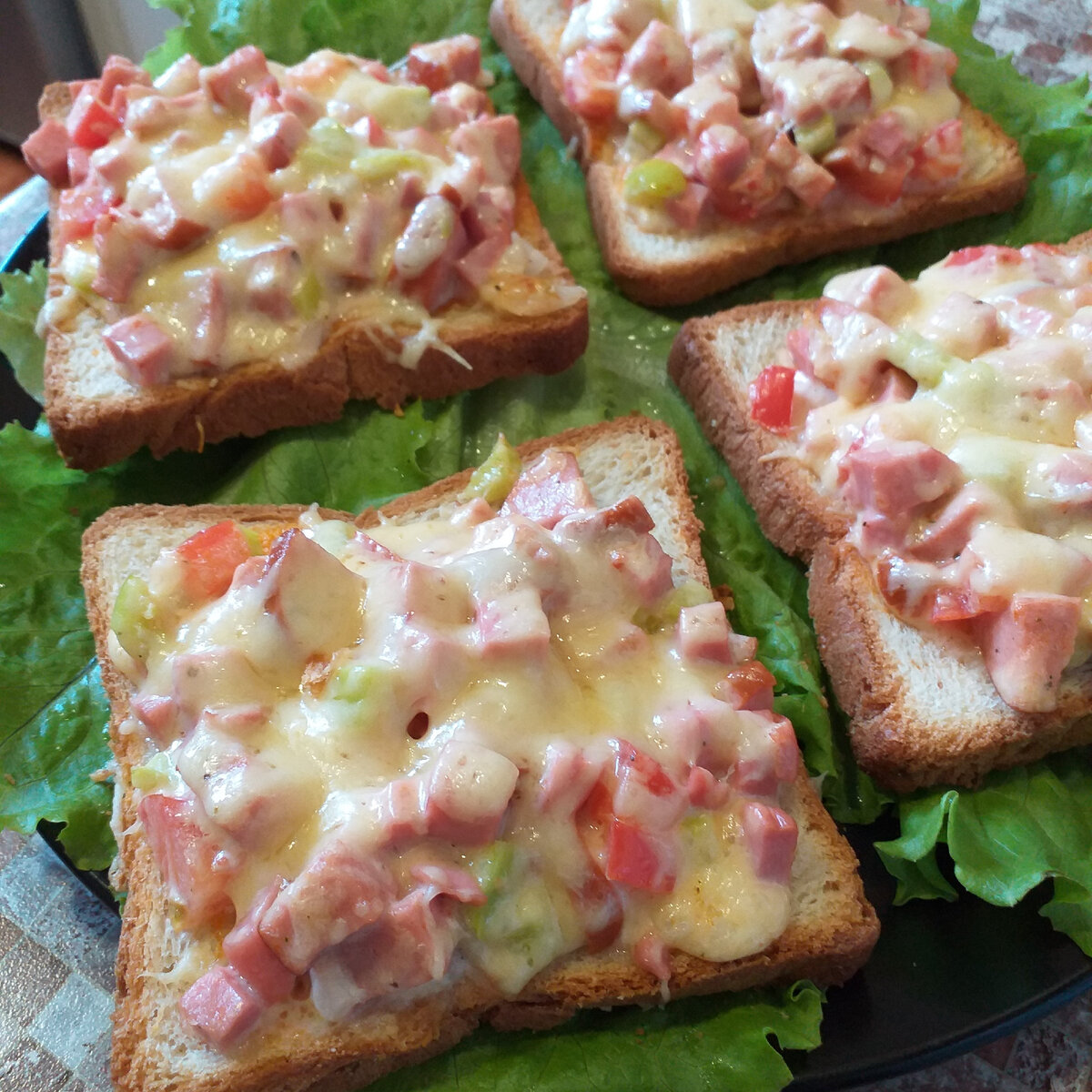 Готовые горячие бутерброды приятно удивят своим богатым вкусом. Их рекомендуется подавать немедленно, чтобы сохранить горячую и сочную начинку.
