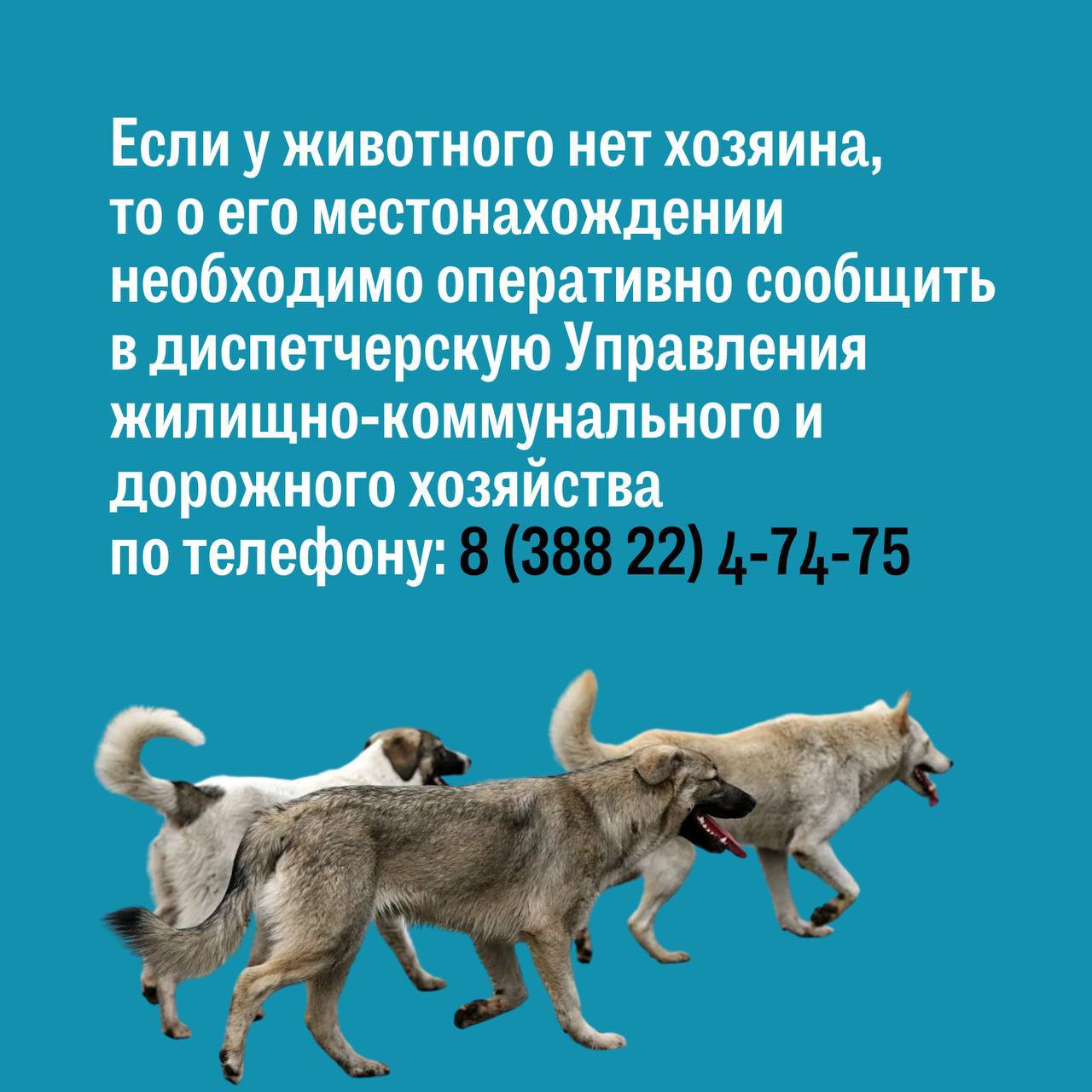 Если хозяин животного вам не известен и вы убеждены, что оно бездомное, позвоните в диспетчерскую Управления жилищно-коммунального и дорожного хозяйства по телефону: 83882247475 .