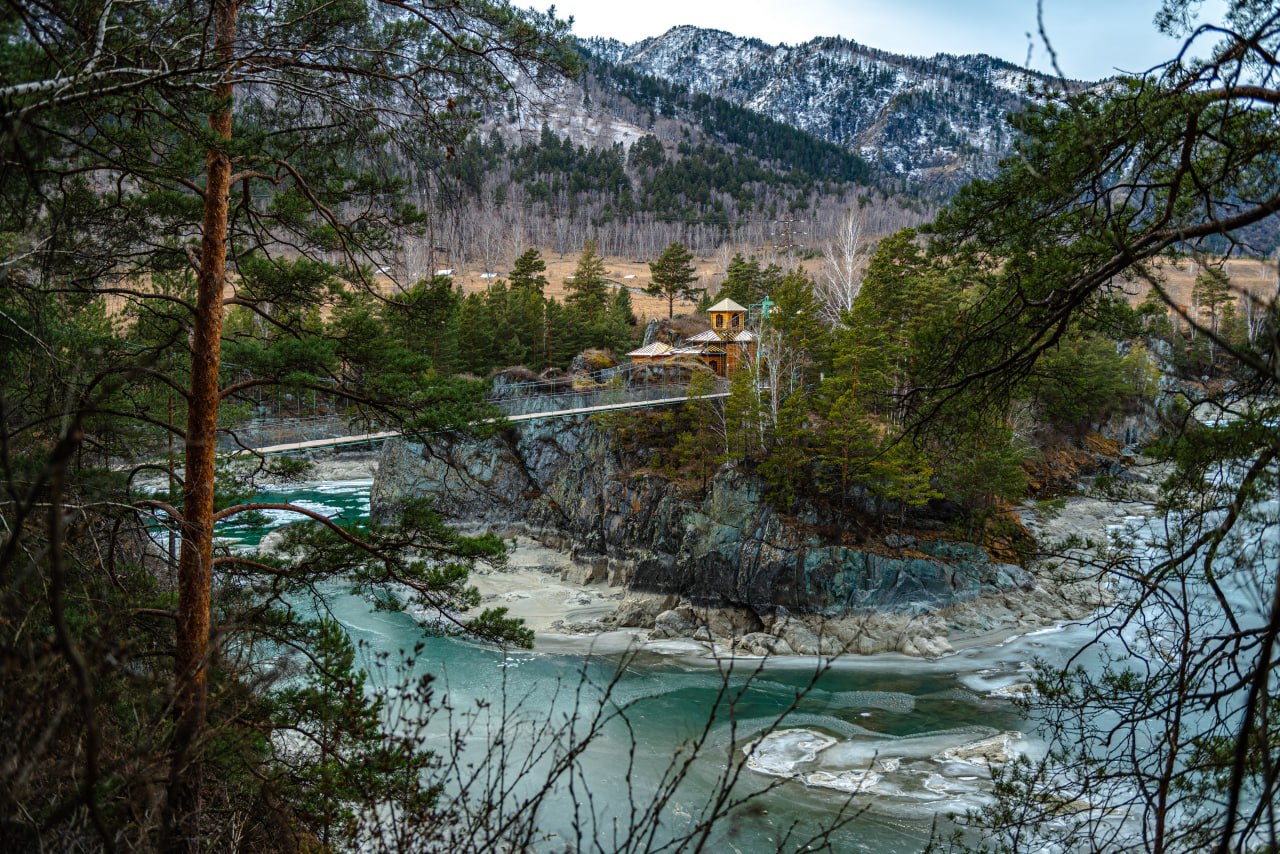 Живописные виды. С моста и острова открываются захватывающие панорамы Катуни и окружающих гор.