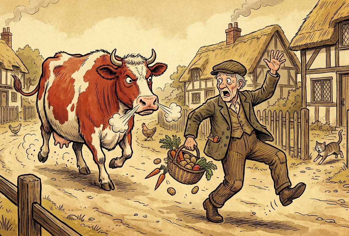 Злобная корова напала на пенсионера. Хозяину теперь придётся раскошелиться.