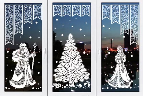 Совершенно уникальные дизайнерские решения можно достичь, используя зубную пасту для создания рисунков на окнах. Просто разводите пасту водой, прикрепите трафарет к стеклу и аккуратно заполняйте контуры. Это не только просто, но и позволяет легко удалить созданные узоры, когда праздник закончится.
