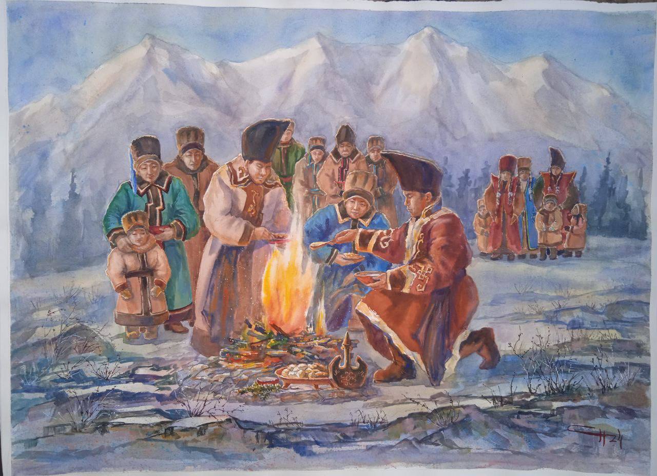 Тема Горного Алтая с его величественной природой и национальным колоритом красной нитью проходит через всё творчество художницы.