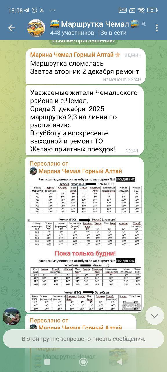 Когда власти республики решат проблему с маршрутками в Чемальском районе? Ситуация не решается годами. Спасибо водителям - они своими силами ремонтируют, приводят в порядок автобусы, которые разваливаются быстрее, чем ремонтируются.Сегодня маршрутка не на линии, сломалась, спасибо водителям, что оповещают в чатах, но не у всех есть этот чат, люди стоят ждут автобус на морозе, а он сломался
