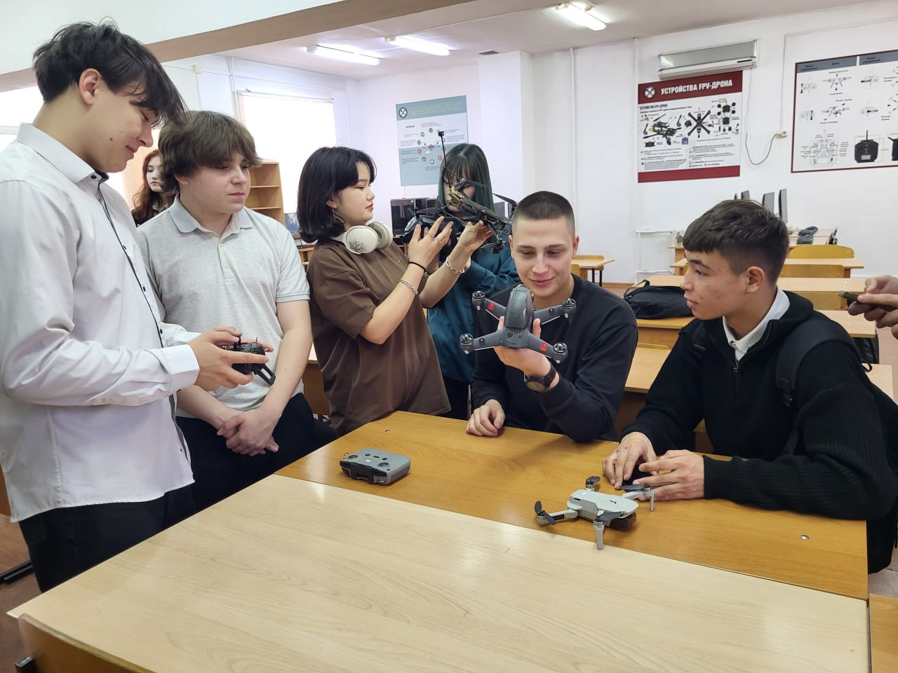 На уроке ребята увидели различные виды беспилотников, узнали об их применении для съемки, доставки грузов, мониторинга и научных исследований. Особое внимание уделили принципу работы квадрокоптеров. Например, им объяснили, как четыре винта позволяют аппарату держаться в воздухе и менять траекторию полета. Кульминацией стало демонстрационное управление дроном и возможность для школьников самим попробовать силы на симуляторах.