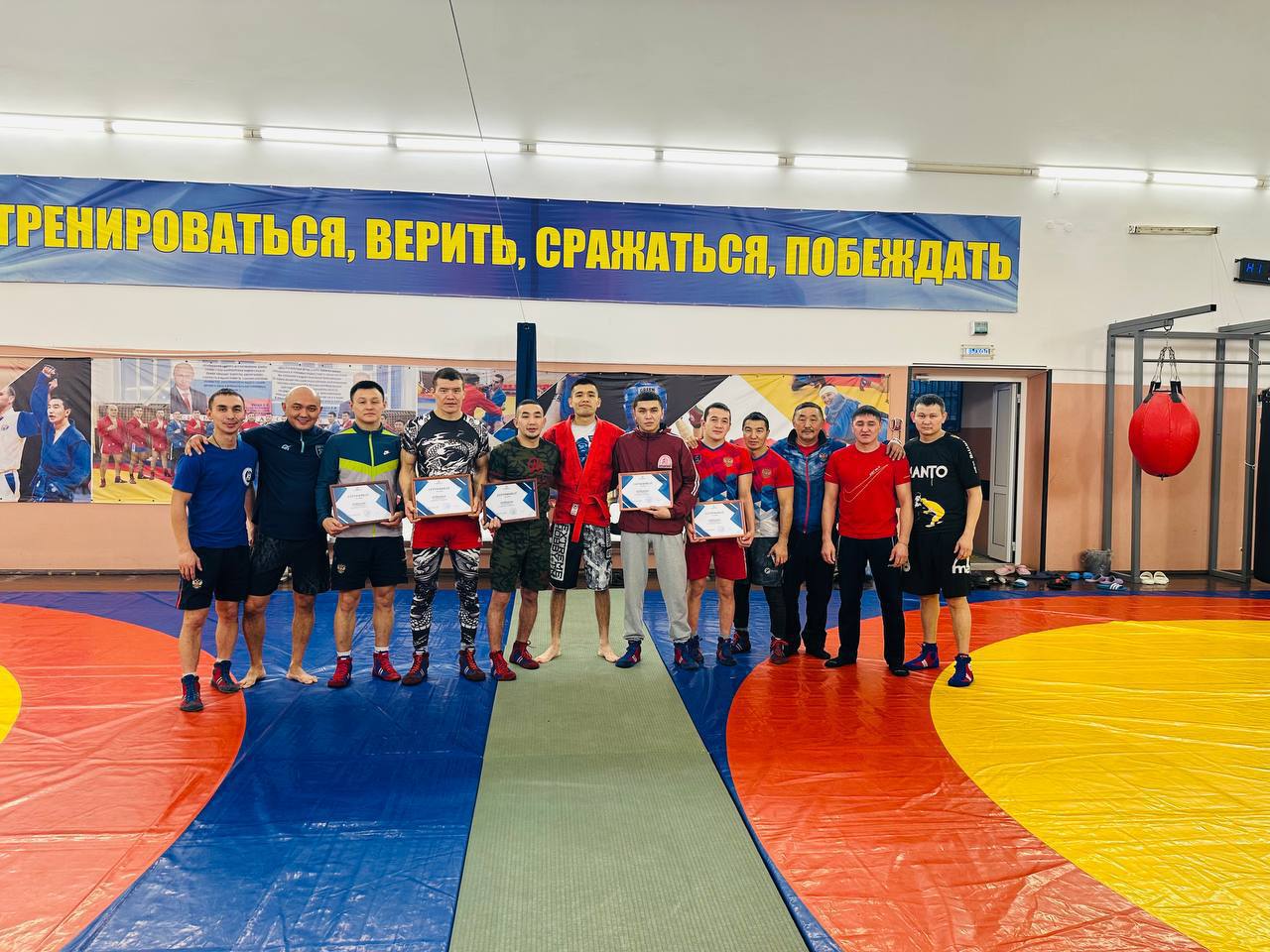 В преддверии Первенства и Чемпионата СФО по самбо министр молодежной политики и спорта Республики Алтай Александр Суразов вручил сертификаты на приобретение спортивной экипировки прославленным спортсменам региона: Айдару Чокову, Алексею Кыныракову, Степану Кобенову, Радмилу Белееву и Сергею Калкину.