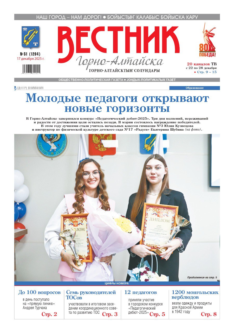 Свежий номер «Вестника Горно-Алтайска» уже в продаже! Из него вы узнаете: