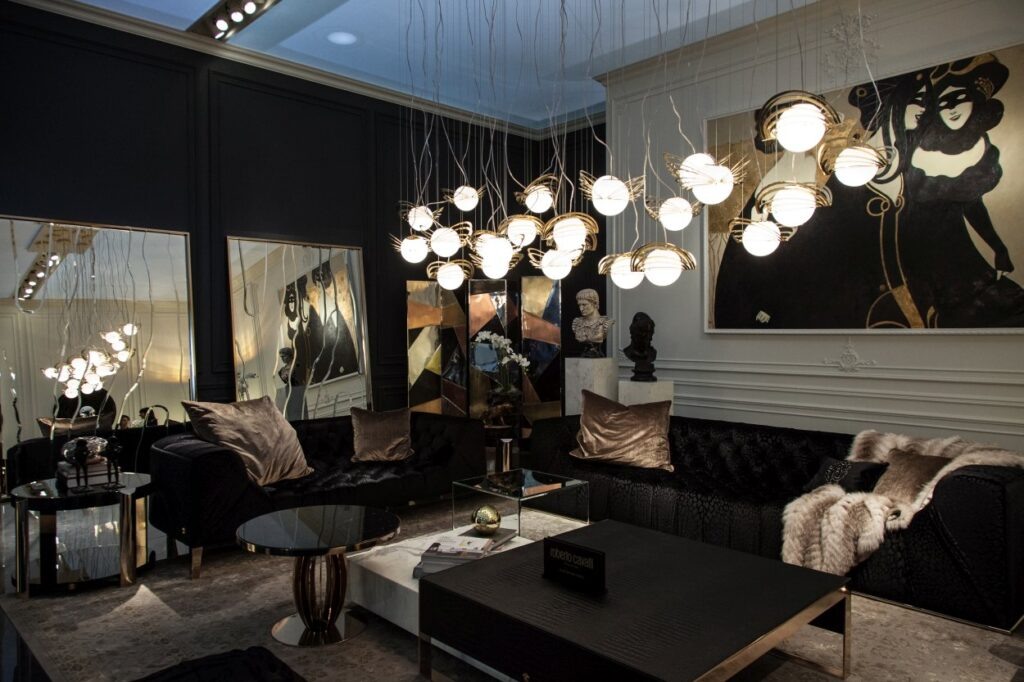- Винтажные акценты. Ретро-стиль продолжает вдохновлять. Массивные люстры из стекла и хрусталя, а также олдскульные лампы выглядят элегантно и стильно, подчеркивая характер помещений.