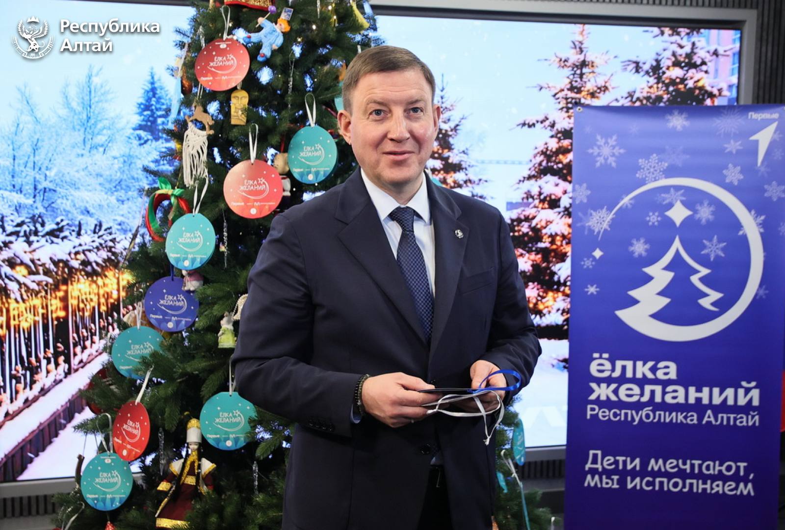 Андрей Турчак снял с новогодней ели пять открыток с желаниями детей из Горно-Алтайска, Онгудая, Элекмонара, а также города Алчевск Луганской Народной Республики – подшефной территории Республики Алтай. Также в акции приняли участие вице-премьеры и профильные министры.