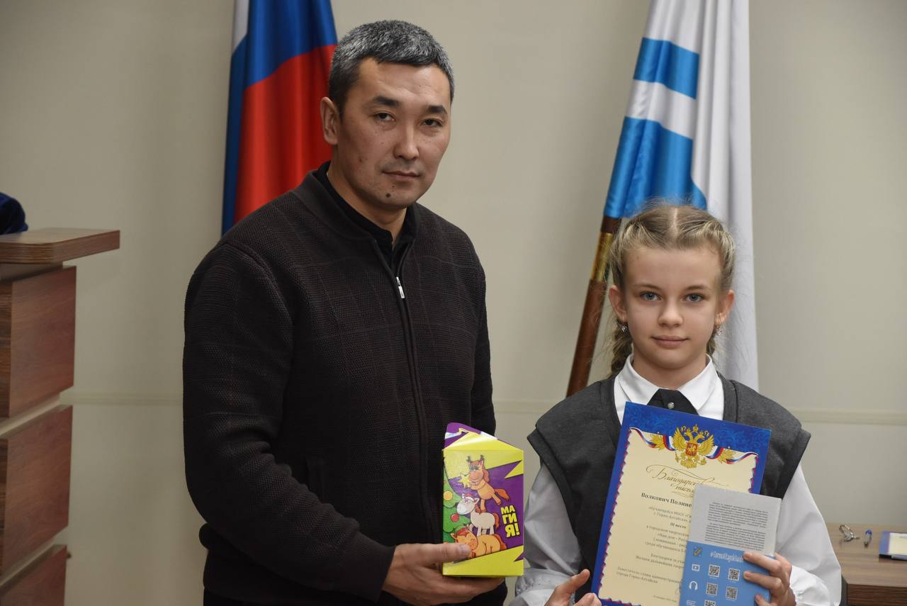 Замглавы администрации города Евгений Сюремеев поздравил детей и их родителей с завершением второй четверти и с наступающим Новым годом.