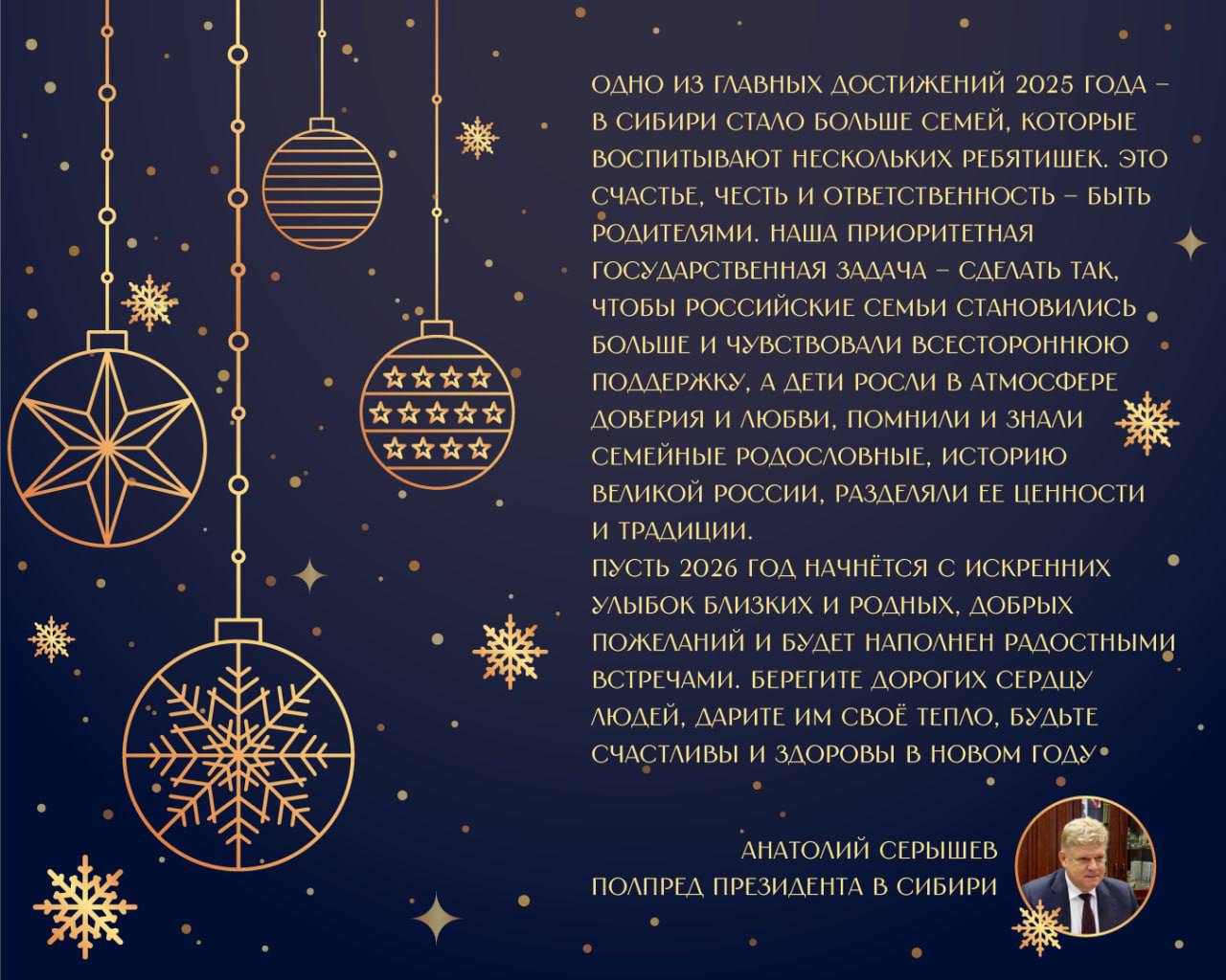Анатолий Серышев поздравил сибиряков с наступающим Новым годом
