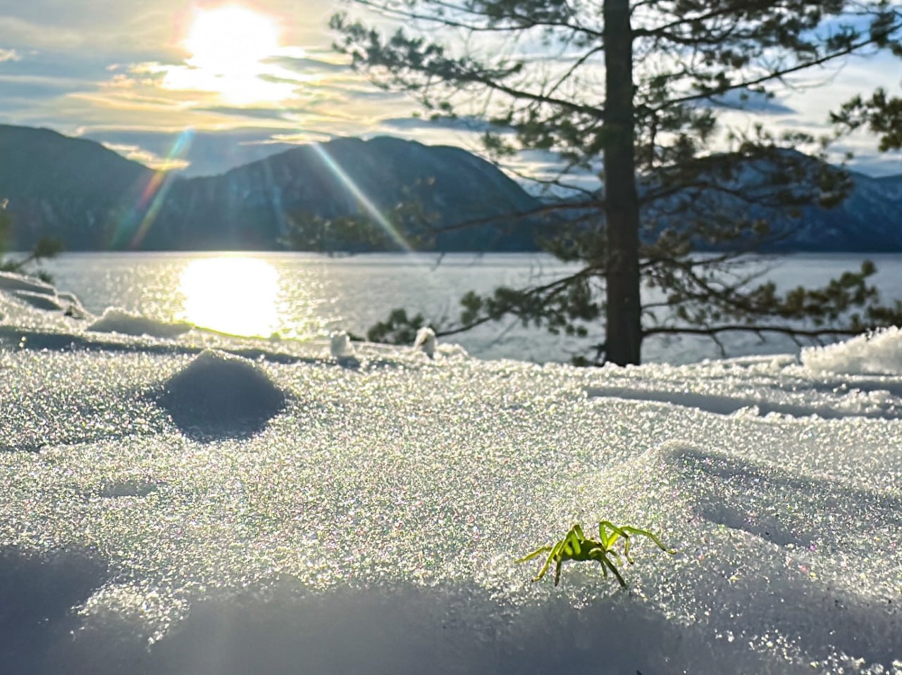Паук в Республике Алтай, несмотря на холод и снег, спешит закончить все свои дела к Новому году.