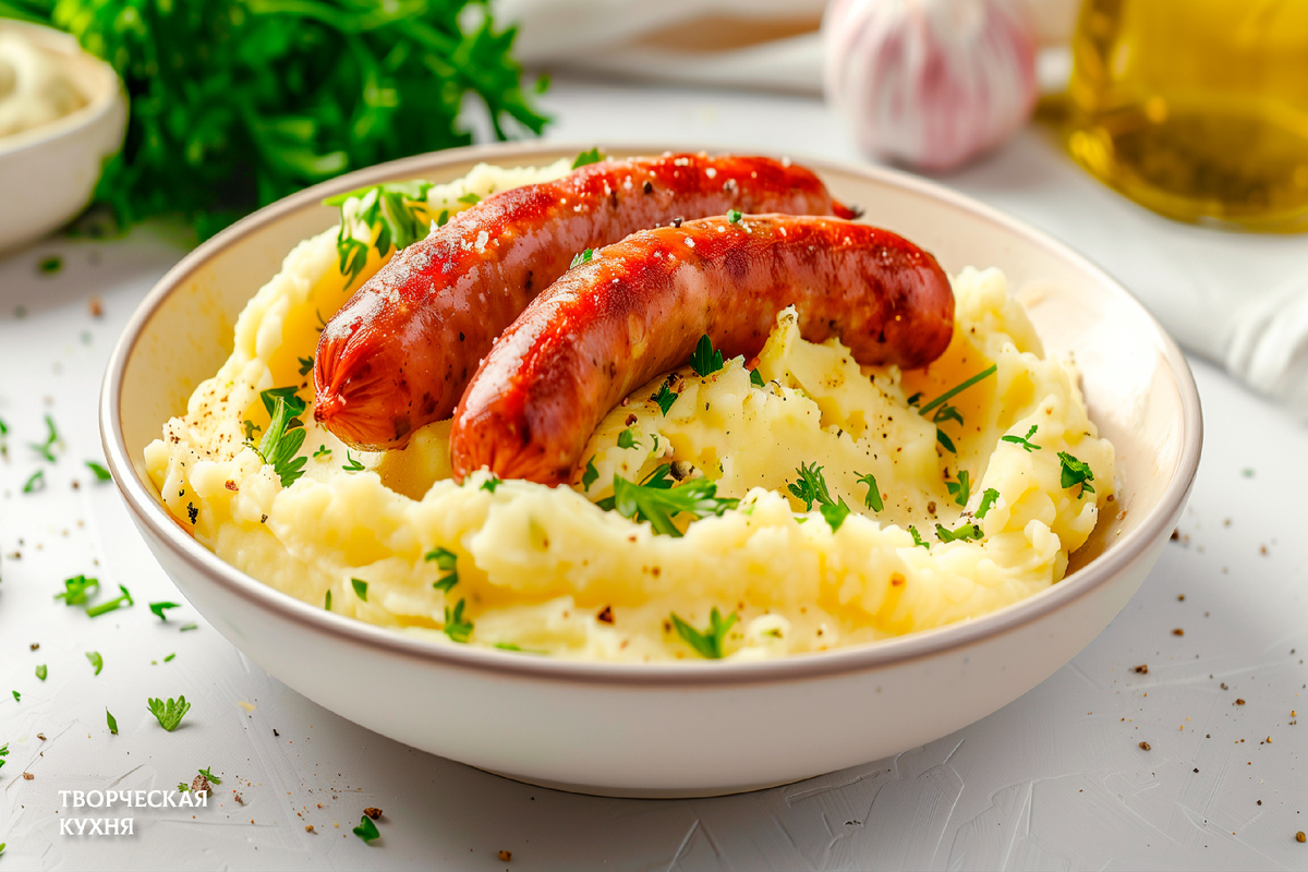 При подаче пюре можно полить растопленным сливочным маслом и посыпать свежей рубленой зеленью. Это сделает блюдо не только более вкусным, но и визуально привлекательным. Идеально подать с мясными деликатесами, такими как котлеты или сосиски, и, конечно, с хорошим настроением. Наслаждайтесь своим кулинарным творением!