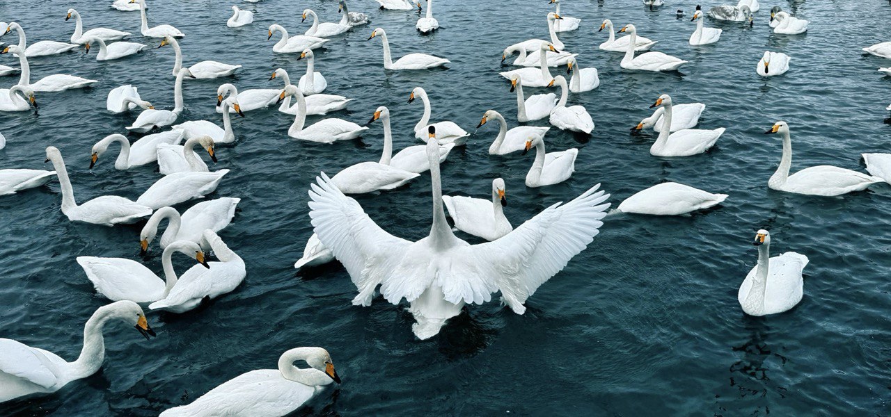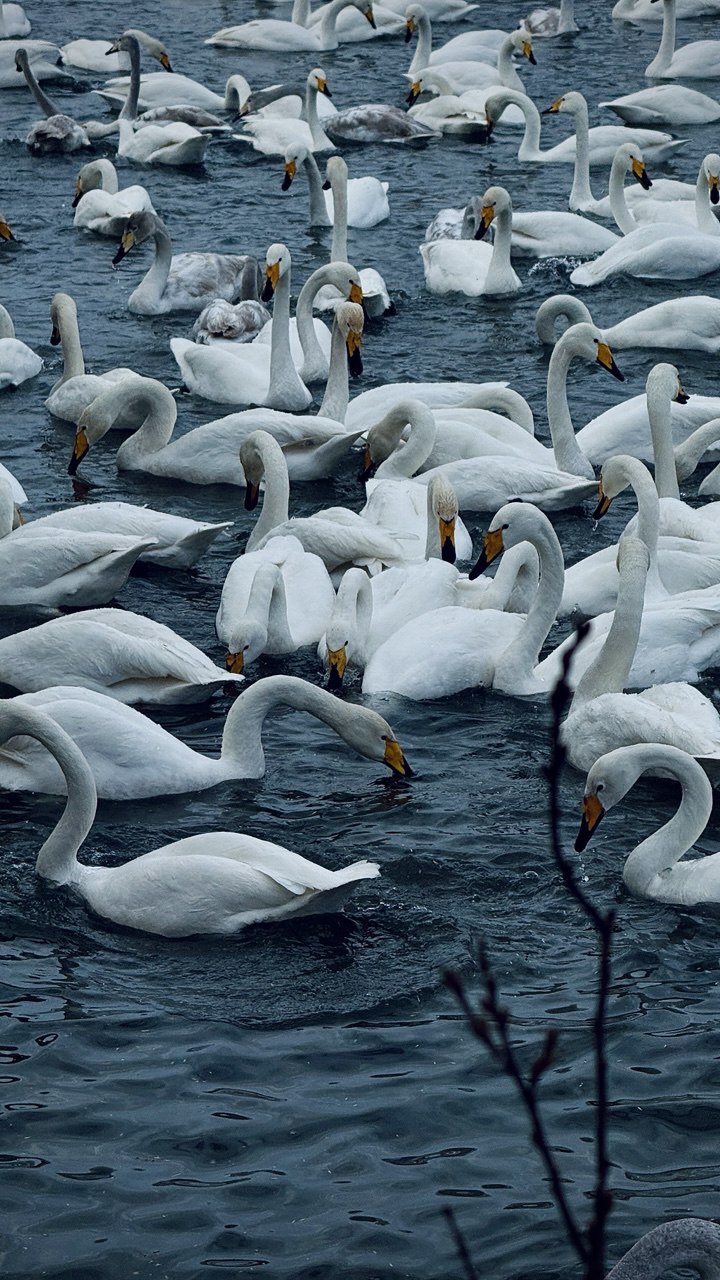 Сотни белых лебедей-кликунов прилетели сюда пережидать зиму. Они кружат над незамерзающей водой, парят в морозном тумане, отражаются в тёмной глади озера. В этом есть какая-то древняя, спокойная магия — знать, что где-то среди снегов существует это тёплое место, эта живая картина, которой не нужны рамки и фильтры.