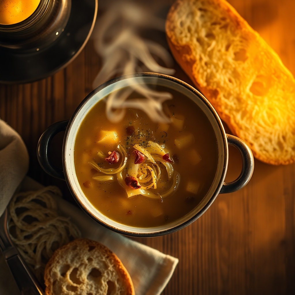 - Французский луковый суп: этот восхитительный суп с богатым вкусом станет настоящим лечением в холодные зимние вечера. Сочетание карамелизованного лука и сырных гренок подарит истинное наслаждение.