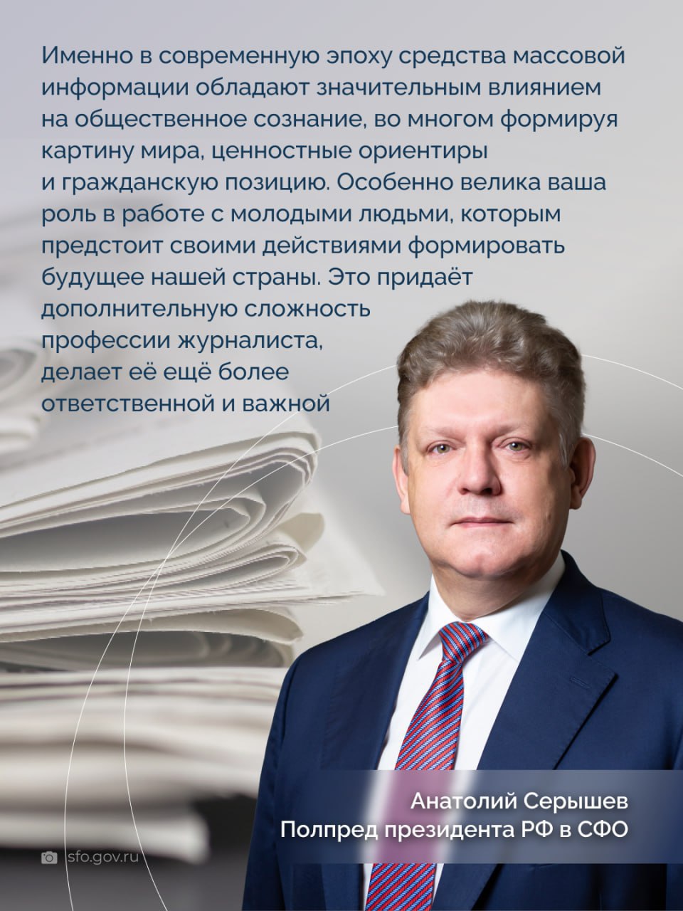 Полпред подчеркнул ответственность и важность профессии журналиста, особенно в работе с молодежью.