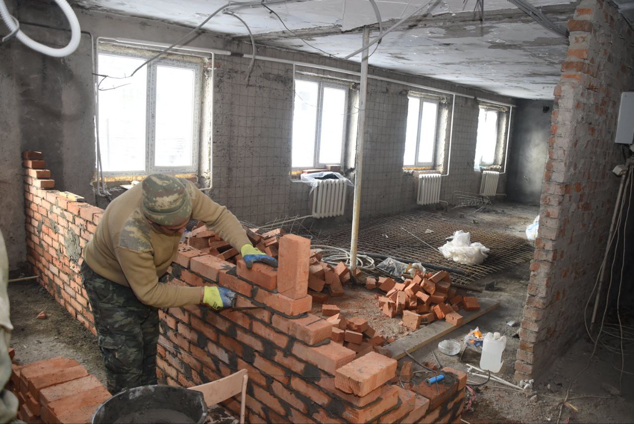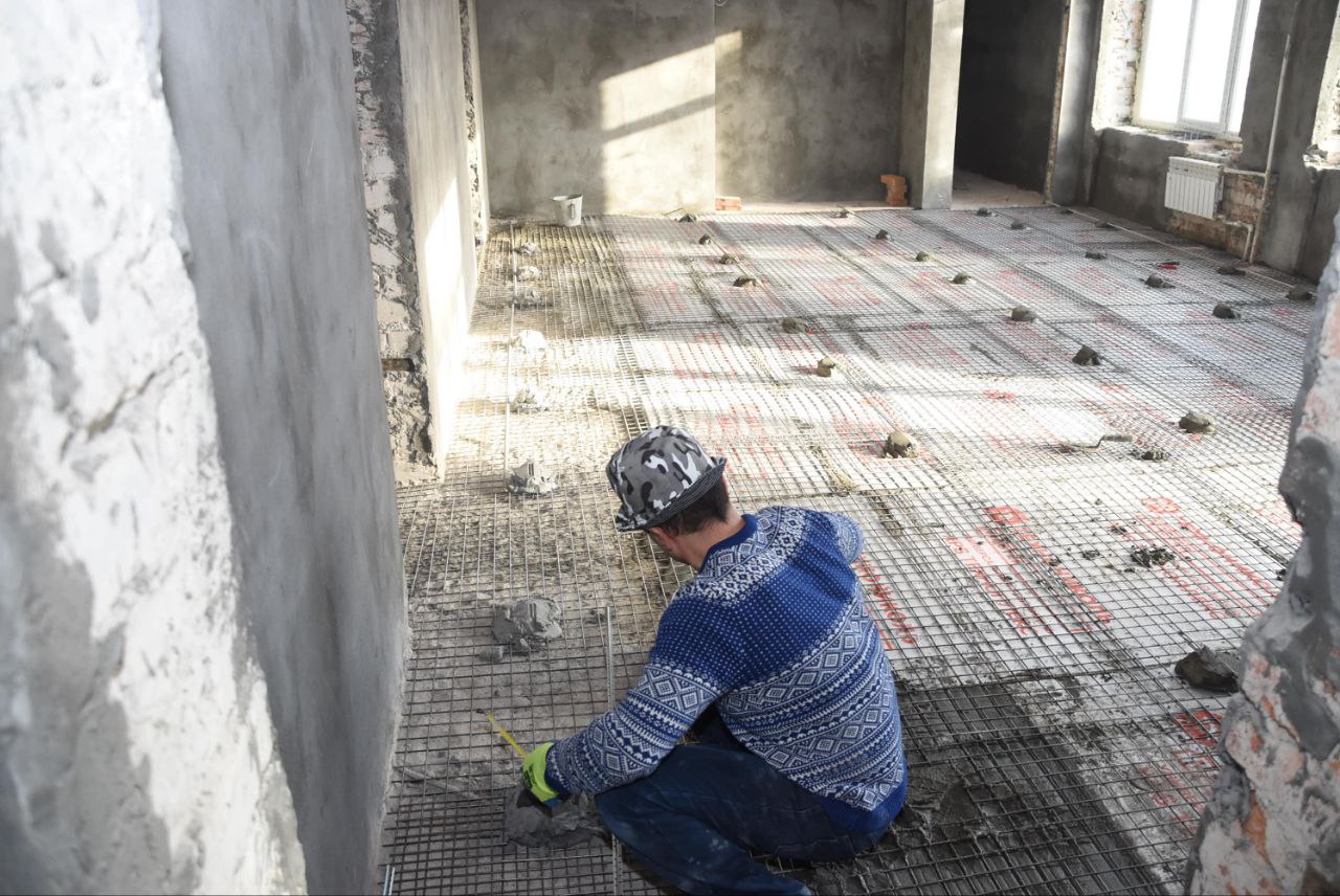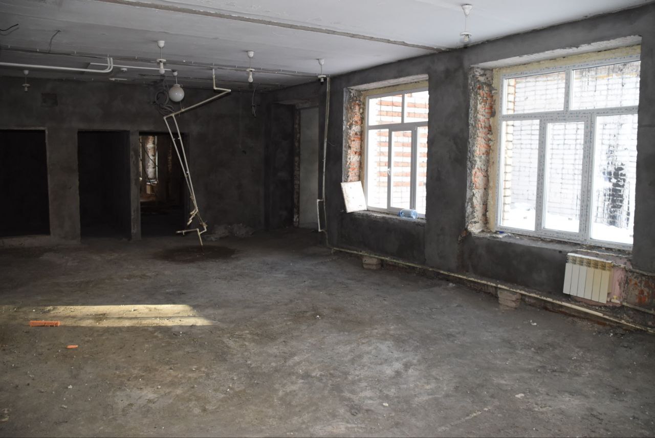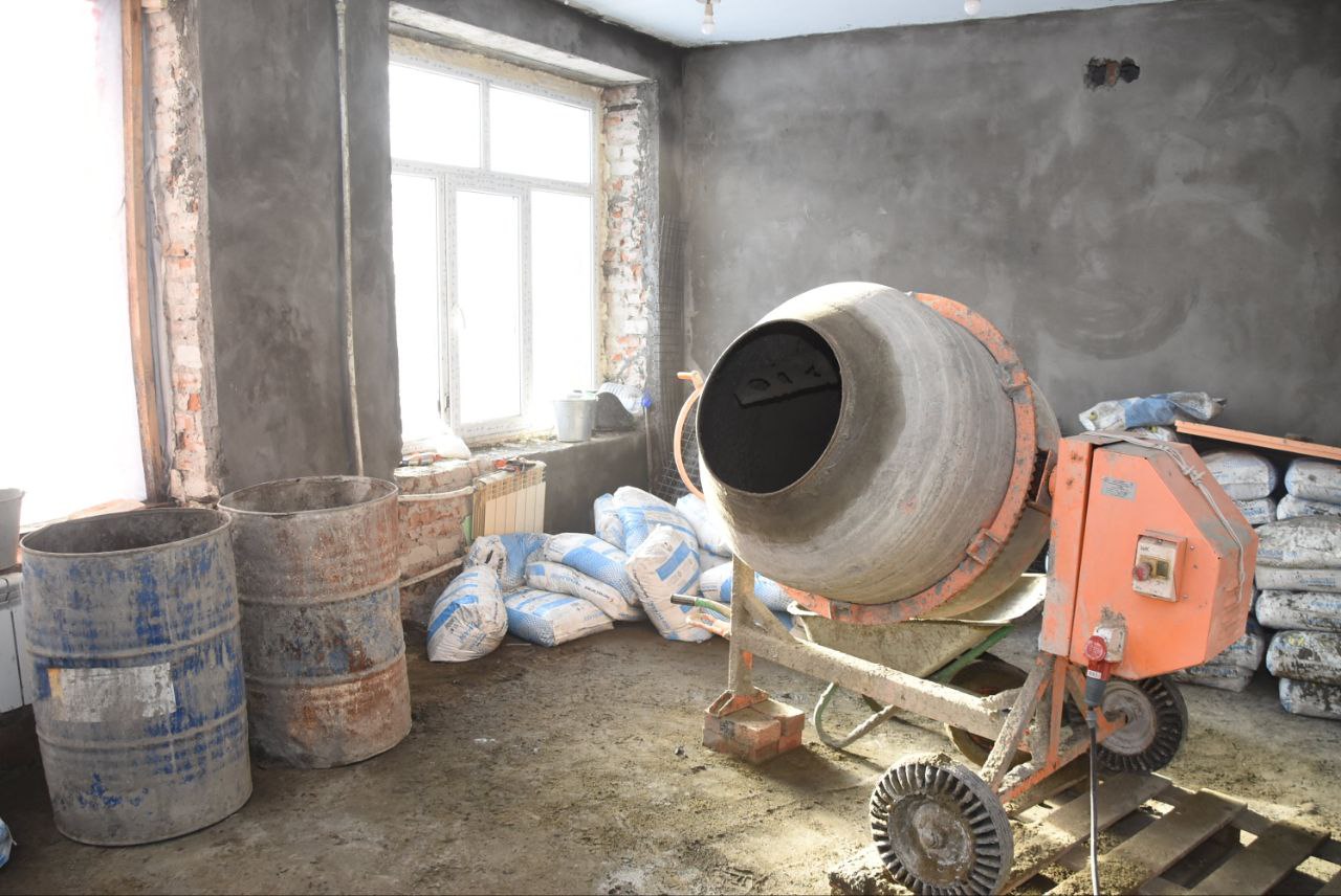 В детском саду №6 также работы идут полным ходом. На стенах появился первый слой штукатурки. На втором этаже здания заливают бетонную стяжку пола. Уже смонтирована электрическая сеть.