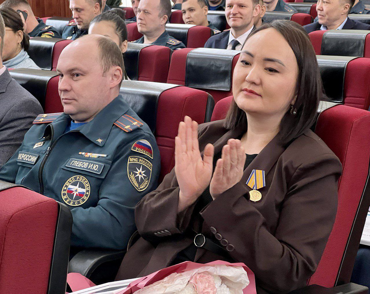 Эжер Ялбаков наградил благодарственными письмами Парламента РА за эффективную работу по предупреждению и ликвидации чрезвычайных ситуаций в РА Аурелию Акчину – методиста республиканского центра туризма, отдыха и оздоровления;