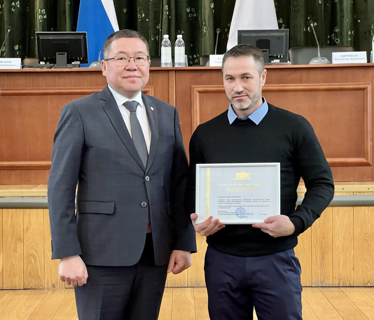 Алексея Бескончина – помощника главы МО «Усть-Коксинский район», Лию Бытысову – главу МО «Каспинское сельское поселение» Шебалинского района.