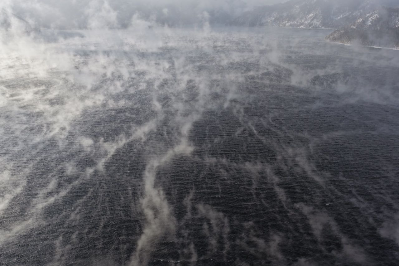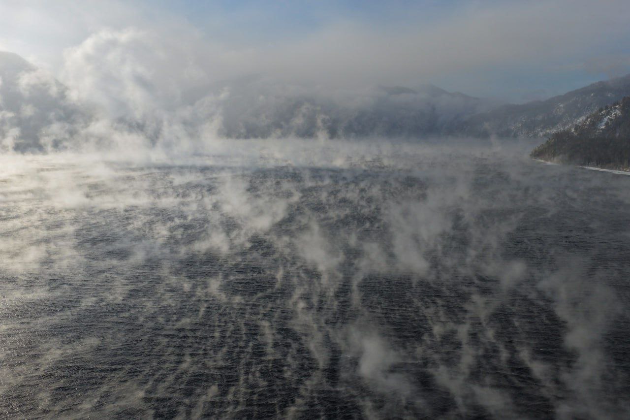 Телецкое озеро «парит» из-за наступивших морозов. Фото: супруги Воробьевы.