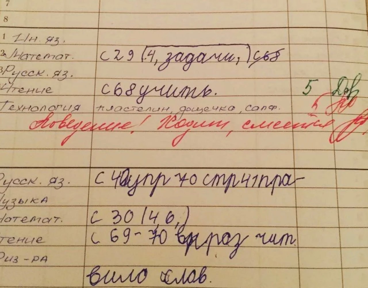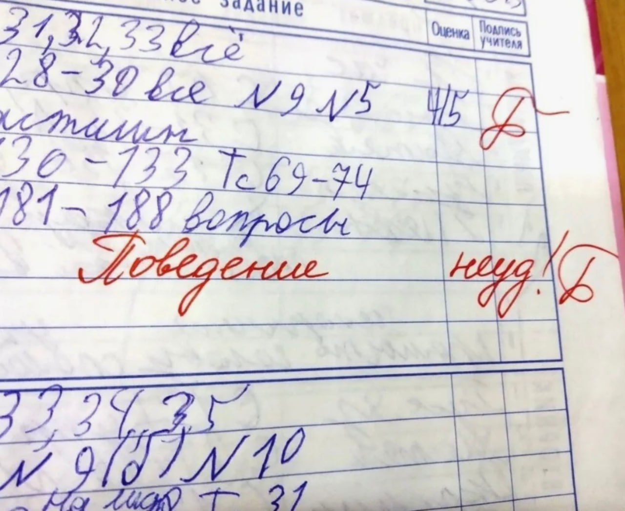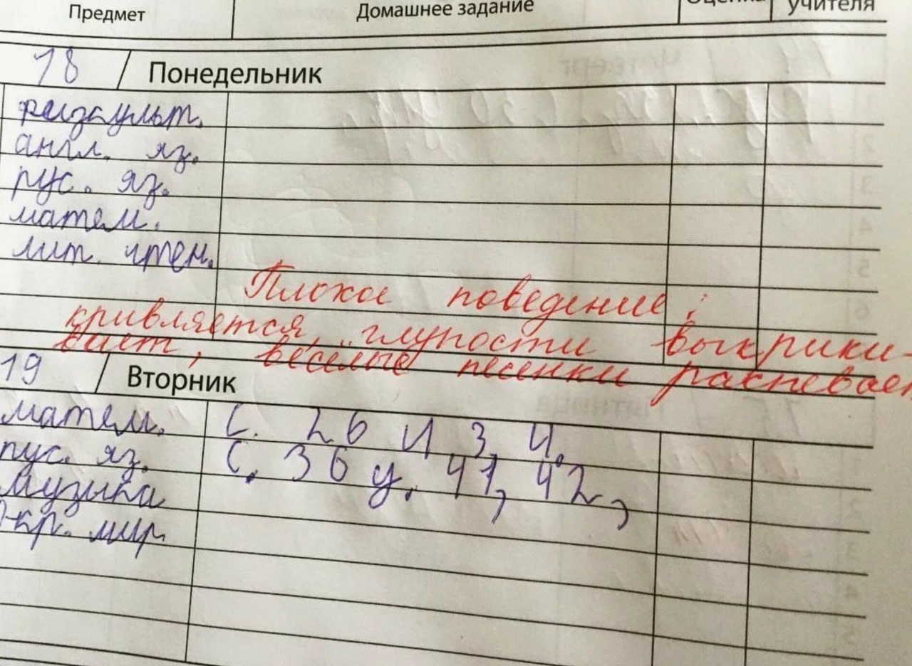 Люди постарше помнят такие оценки. Потом оценки за поведение не ставили, но учителя могли написать замечания в дневник «красной пастой».