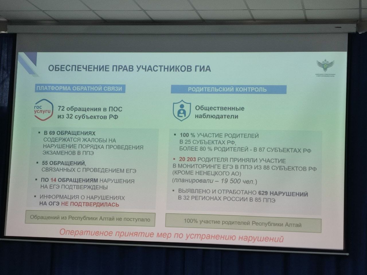 Анзор Музаев отметил, что в рейтинге интегрированной оценки качества и объективности проведения основного периода проведения ЕГЭ и иных оценочных процедур Республика Алтай вошла в десятку лидеров среди всех регионов страны.