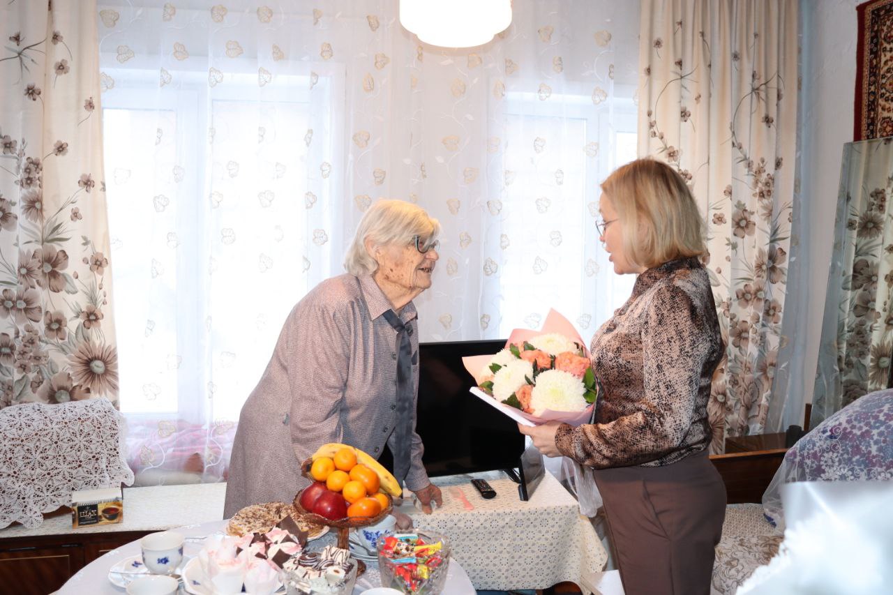В гостях у именинницы побывали зампредседателя правительства РА Антон Черников, и.о. мэра Горно-Алтайска Юлия Мягкова, председатель городского совета депутатов Юрий Нечаев, а также председатель Совета ветеранов Горно-Алтайска, депутат Алексей Ивашкин.