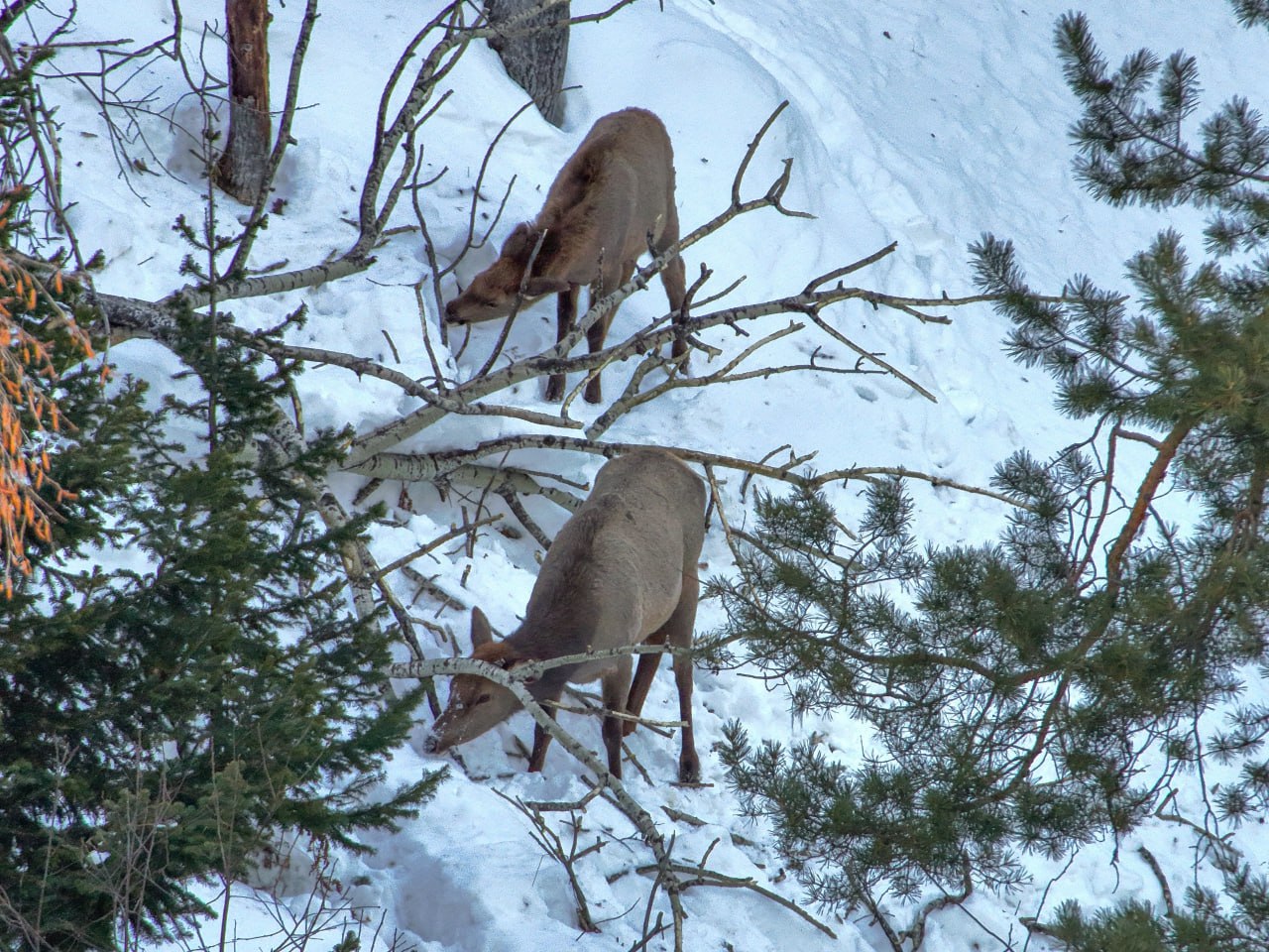 В поисках мест с меньшим снегом животные спускаются с вершин туда, где толщина снежного покрова меньше и передвигаться, добыть корм легче.