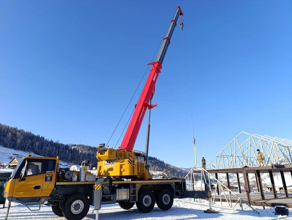 На площадке в Урлу-Аспаке идёт монтаж металлического каркаса нового модульного культурного центра. Работы идут с опережением графика. Уже к апрелю здание с библиотекой будет готово, а летом здесь благоустроят территорию.