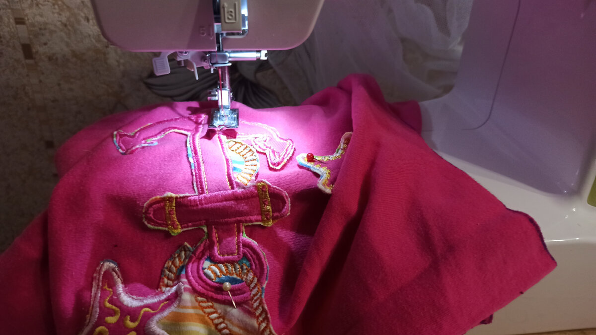 Началось всё с простой идеи: снять мерки и сделать выкройку под маленькое телосложение. Аппликация добавила декоративный штрих, а ткань из трикотажа оказалась как нельзя кстати: мягко лежит по коже и не мешает движениям.