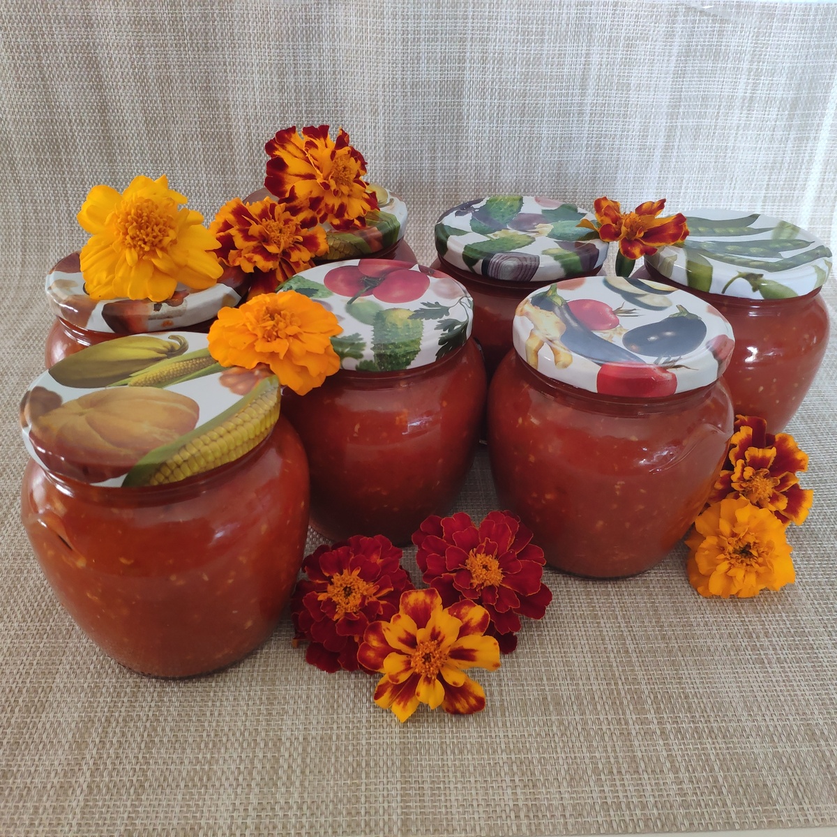 Заготовка начинается с ярких помидоров и мясистых красных перцев. Их перерабатывают до пюре, сохраняв естественную сладость и насыщенность томатной кислинки. Чеснок добавляет глубину, масло и уксус — мягкость и нежную кислинку, которые держат баланс во вкусе.