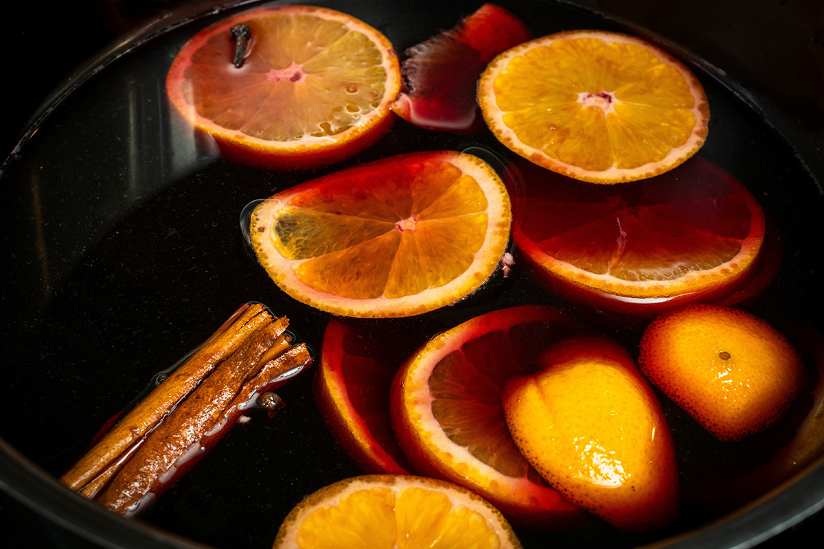 Классика похожа на согревающий чай с характером: сухое красное вино, часть крепкого алкоголя, смесь изюма и орехов, цедра апельсина и щепотка специй. Всё медленно нагревается, не доводя до кипения, чтобы сохранить ароматы.