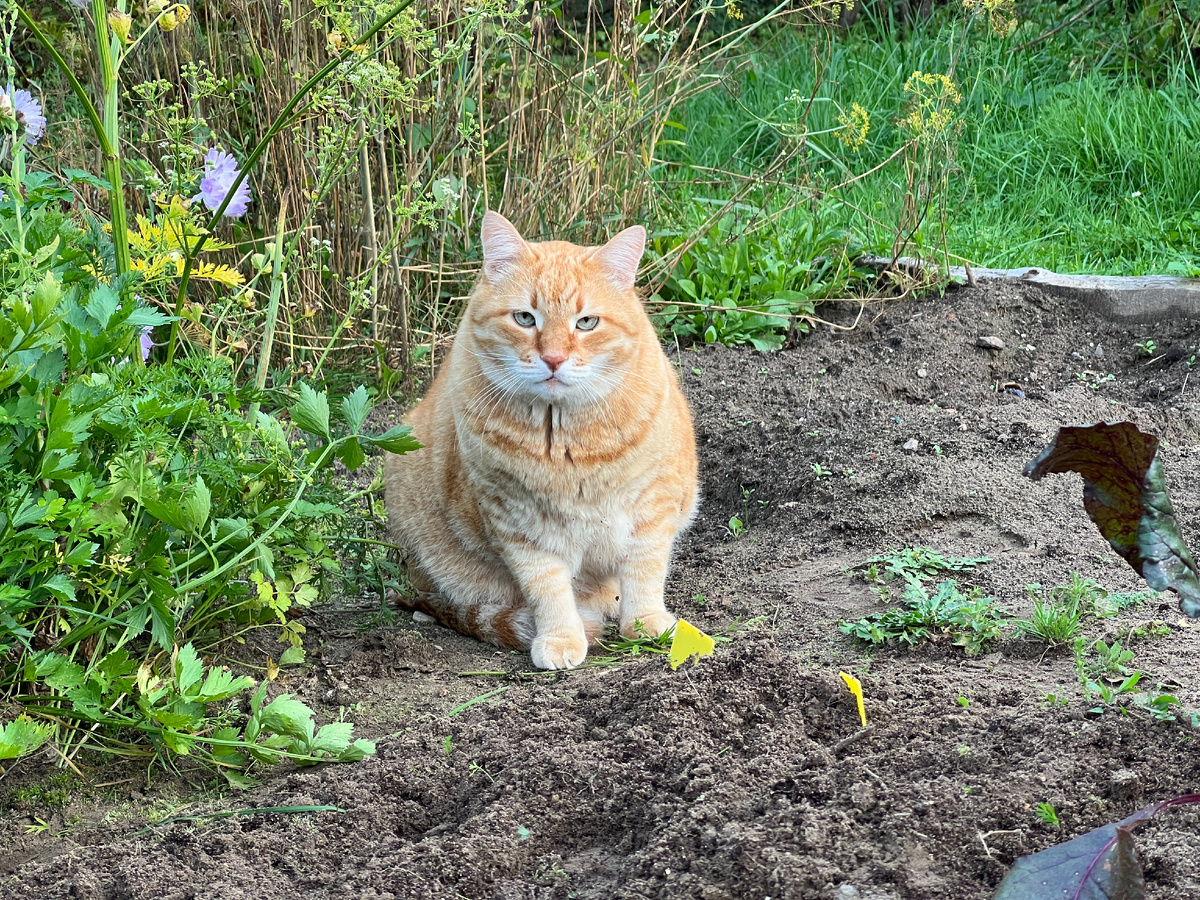 Деревня встретила нас размеренно: кот на пороге символизировал домашний порядок, а хозяйка огорода напоминала о сезонной работе и привычной рутине. Мы продолжили вечер в лесу, где грибные следы давали понять, что бурый мир вокруг активен и не устал за лето.