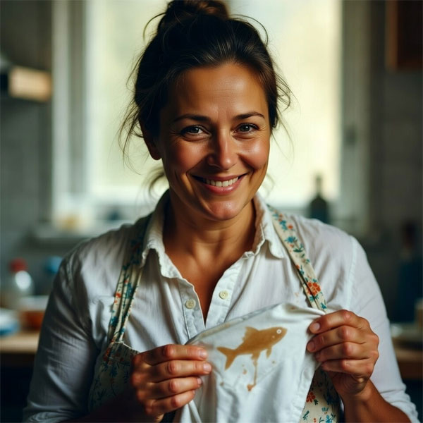 Свежие пятна от супов, молочных продуктов и соусов обычно легко удаляются тёплой мыльной водой с последующим тщательным полосканием. Для застарелых следов чаще применяют глицерин и аммиак в различных соотношениях: на тонких тканях глицерин разводят пополам с водой и добавляют небольшое количество нашатыря; для шерсти готовят более слабый раствор глицерина с аммиаком и тёплой водой. Для тёмных тканей используются смеси винного спирта с нашатырём и солью.