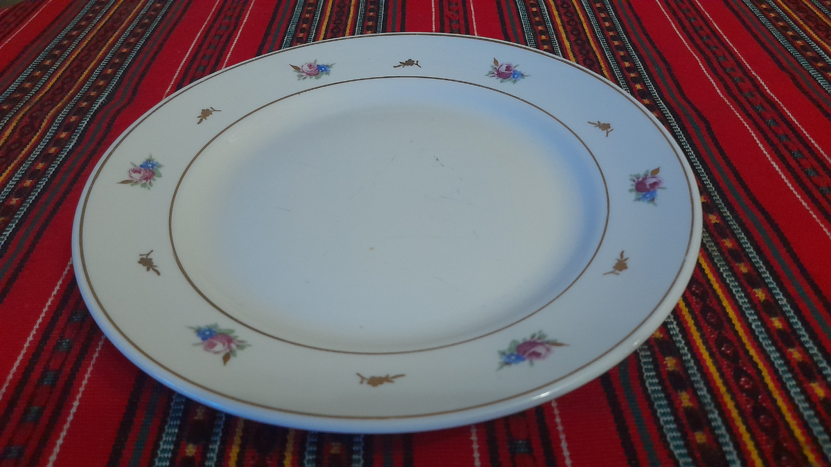 В кругу поклонников советского винтажного фарфора особое место занимает деколь, известный как "русский ситец". Этот нежный узор, состоящий из скромных букетиков роз и незабудок, украшенных небольшими золотыми веточками, пережил время и продолжает вызывать теплые воспоминания у тех, кто помнит его с детства. С 1950-х по 1960-е годы такие рисунки украшали чайные пары и тарелки. На недавней барахолке одна из таких тарелок попалась на глаза, и бесспорно, это была быстрая покупка. Особенность данной находки её происхождение из Дулёво, 1959 года.